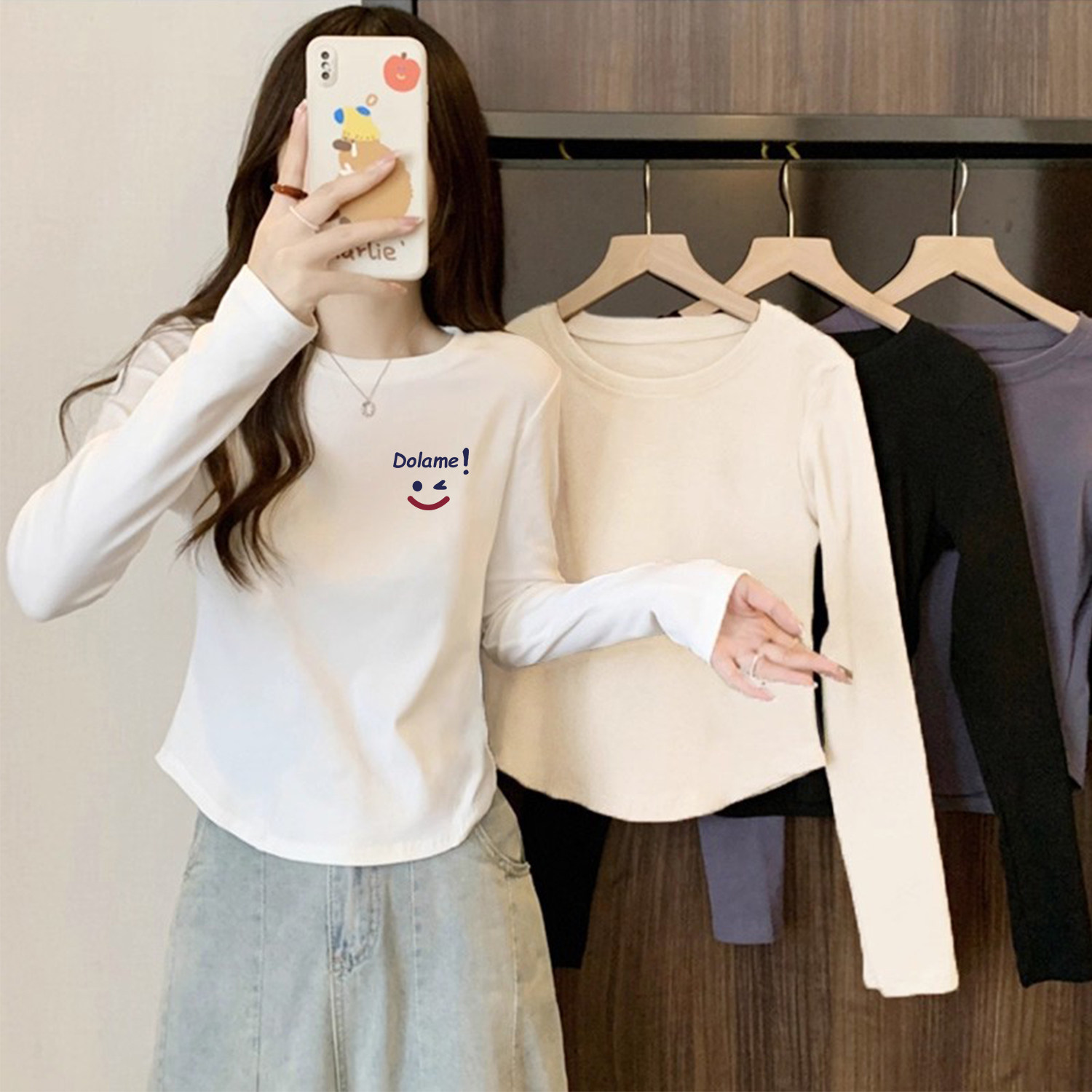 儿童女童纯棉长袖t恤短款春秋装打底衫内搭外穿薄款修身大童上衣