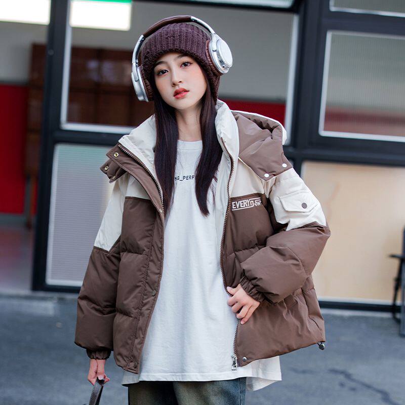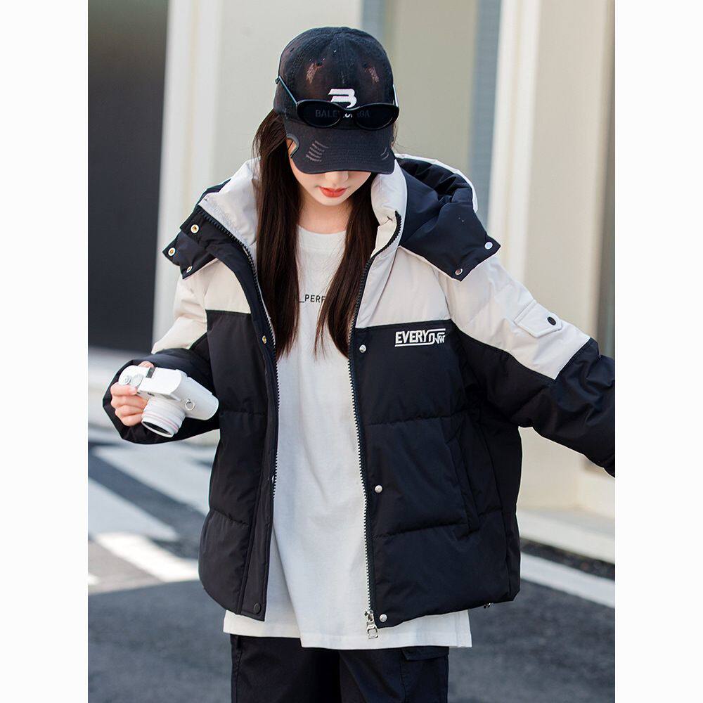 初中生羽绒服少女冬装加绒厚外套韩版高中学生连帽宽松时尚白鸭绒