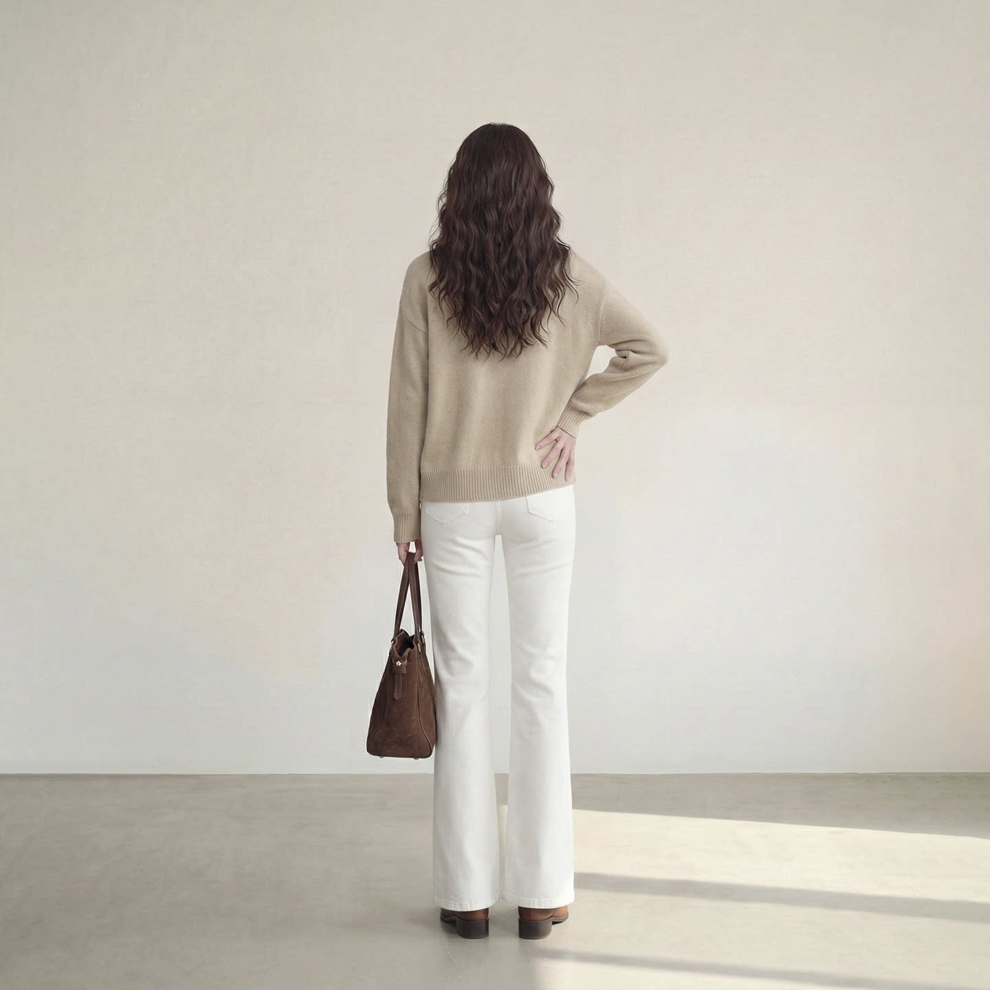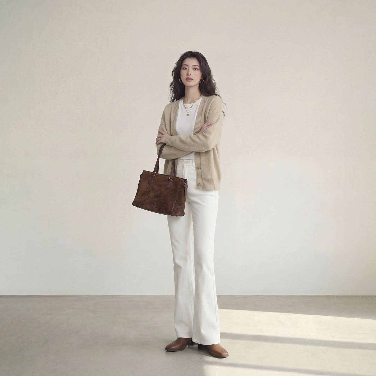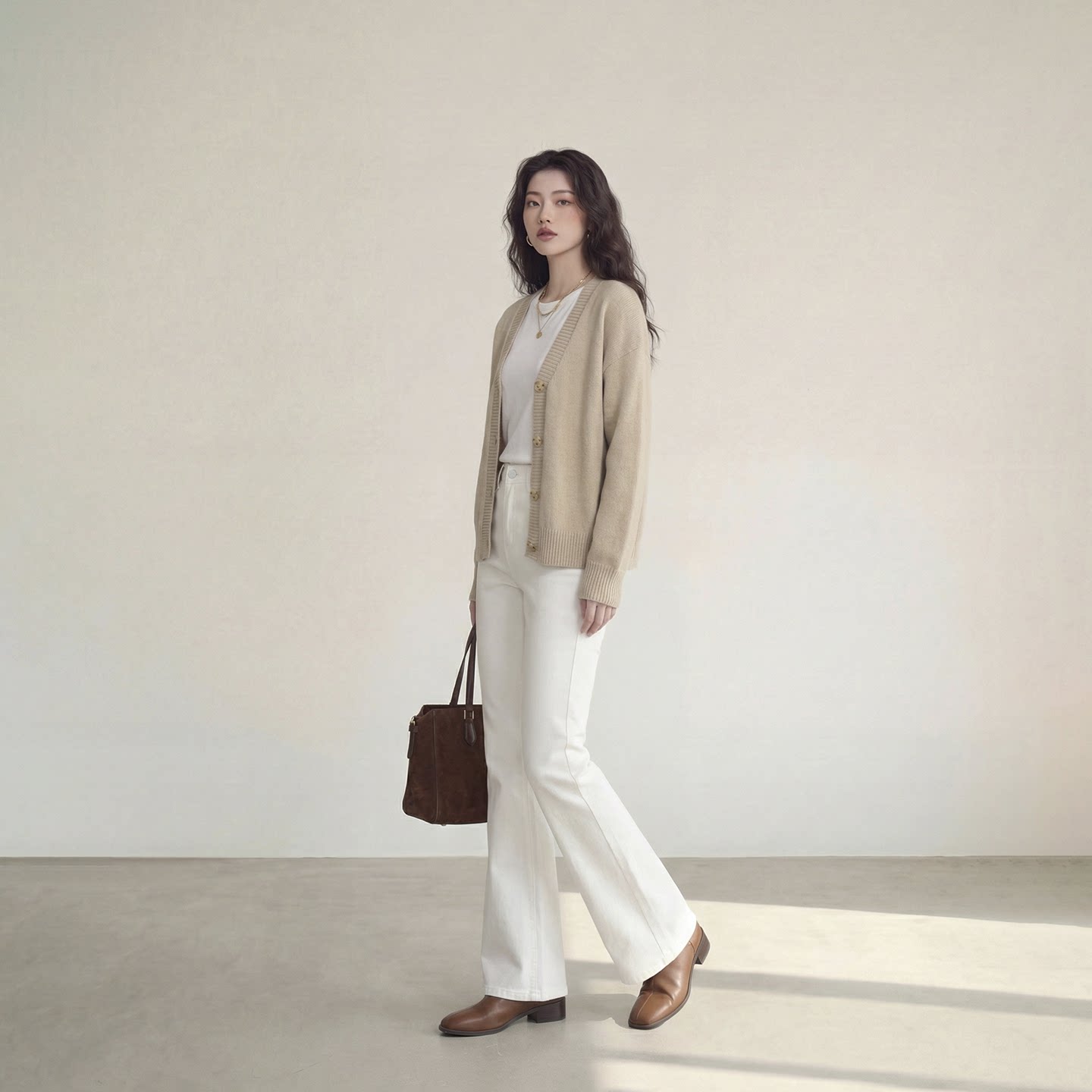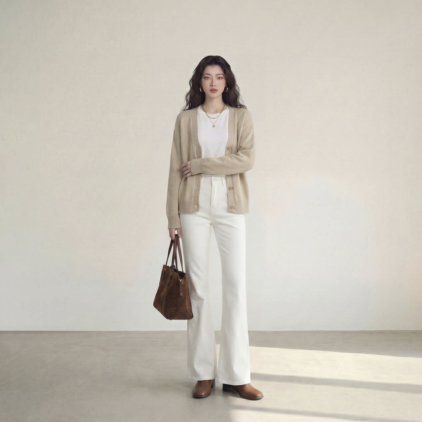 艾格白色喇叭裤女2026新款极简风微喇牛仔裤显瘦直筒休闲长裤