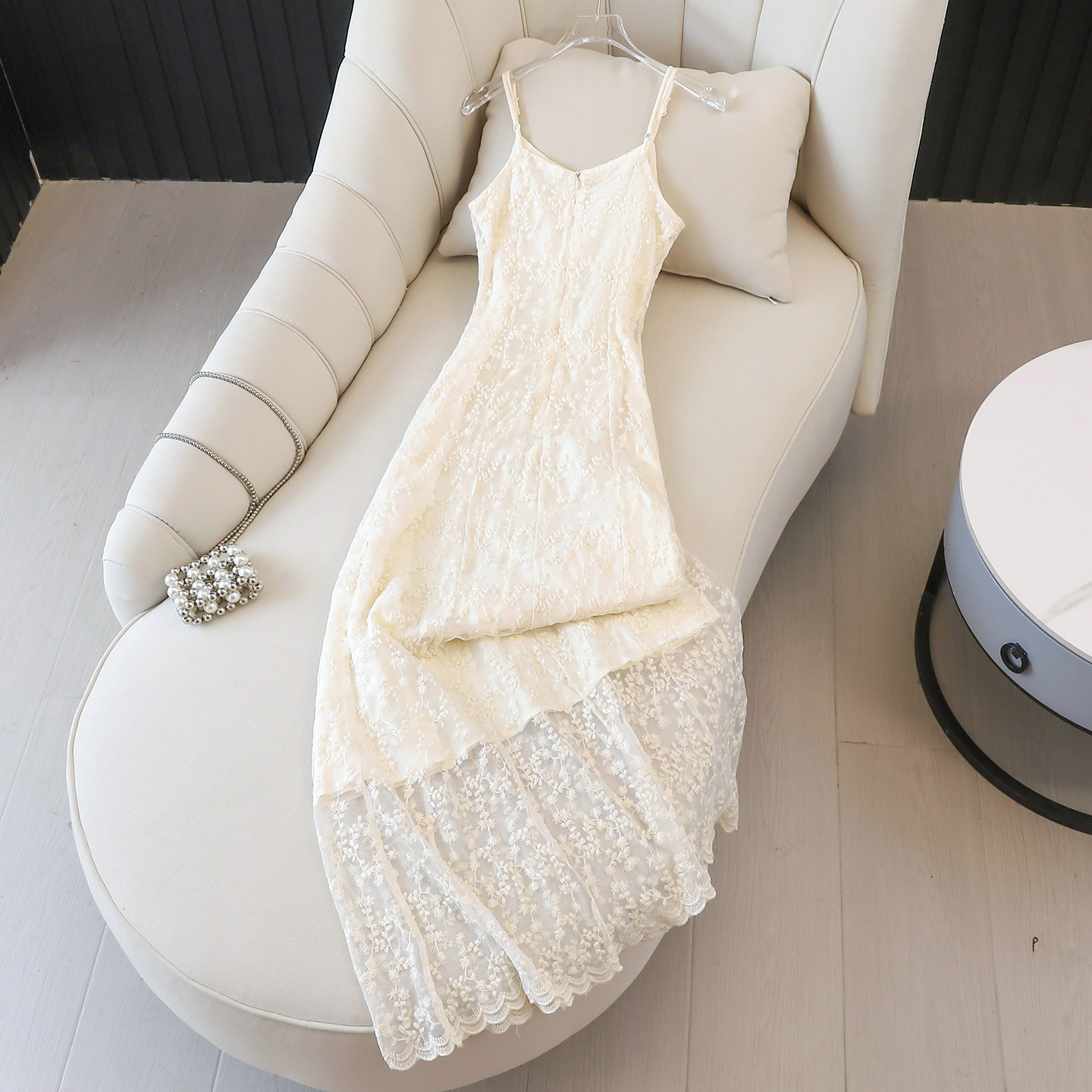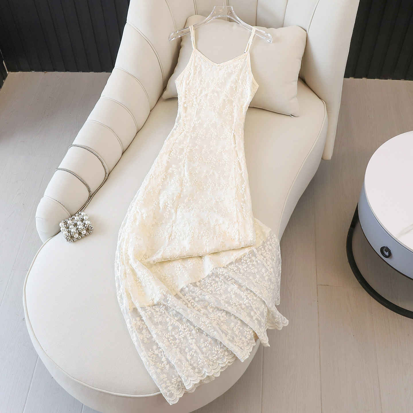 it :CHOCOOLATE法式白色蕾丝吊带连衣裙女高级感气质度假显瘦长裙
