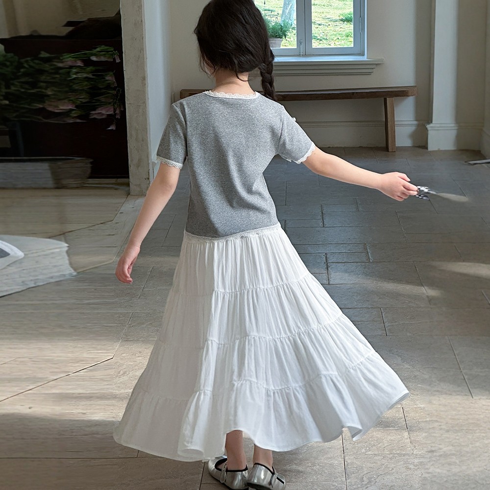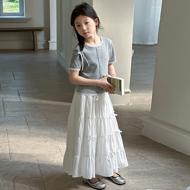 夏季女童洋气短袖半身裙儿童花边百搭T恤套装蛋糕长裙韩版两件套