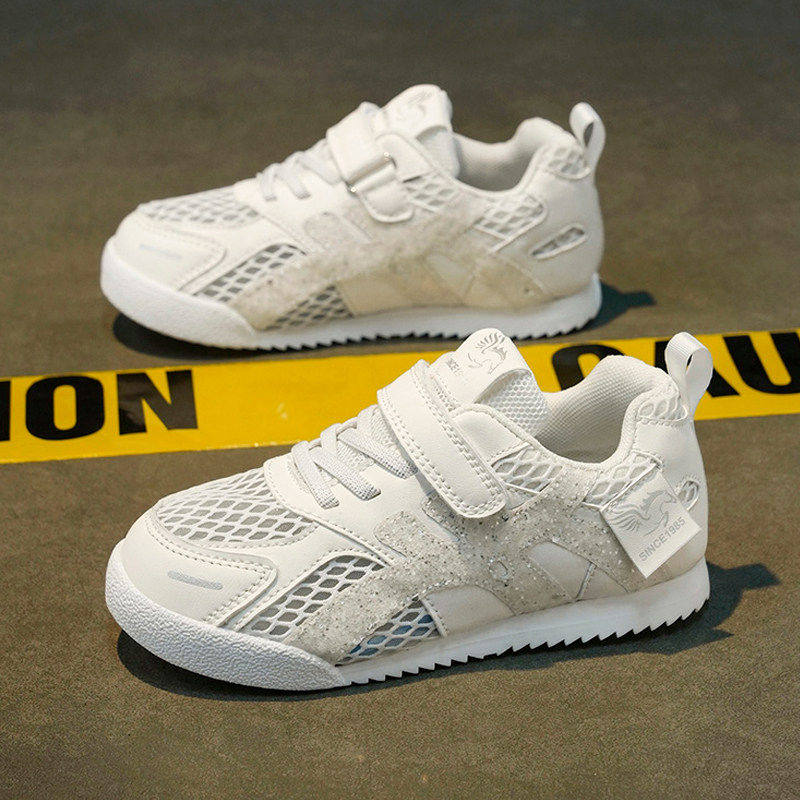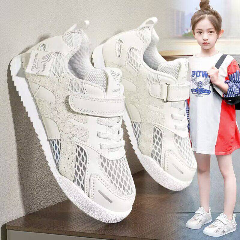 女童鞋子夏季薄款透气网面儿童白色运动鞋女孩阿甘鞋小学生小白鞋
