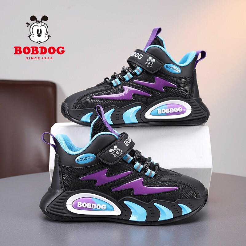 巴布豆男童鞋秋冬季新款运动鞋加绒防水皮面男孩保暖百搭儿童鞋子