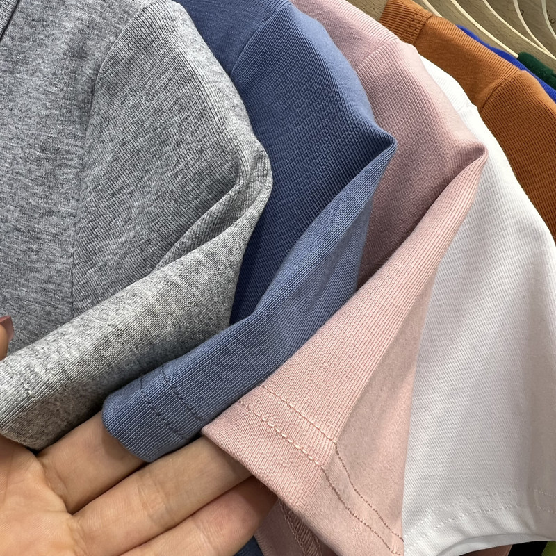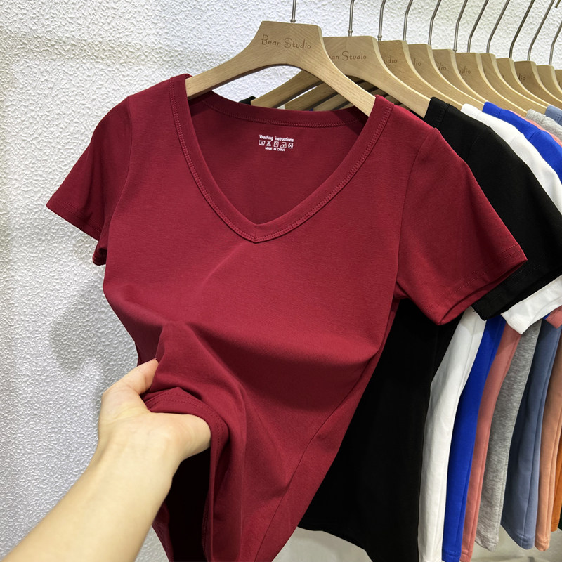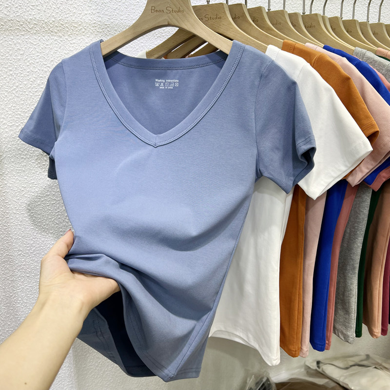 欧货百搭纯色V领短袖T恤女修身显瘦正肩半袖上衣2026夏季新款纯棉