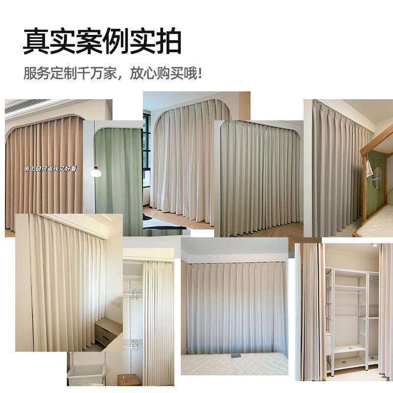 金属衣柜布帘F986H966放式帽间门遮挡防尘帘衣遮丑帘免打开孔轨道