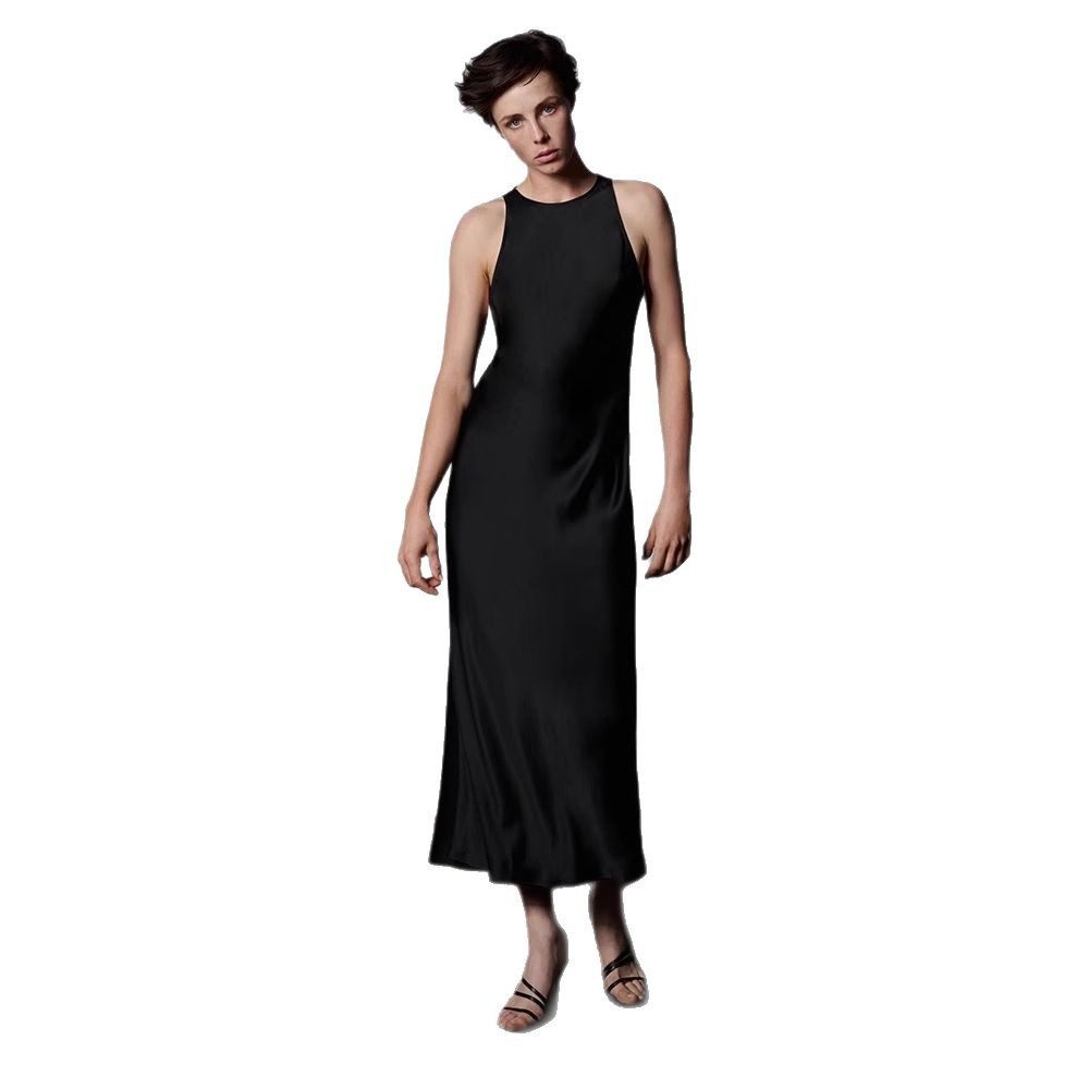 2025欧美跨境新款无袖连衣裙长裙修身时尚圆领气质优雅名媛风