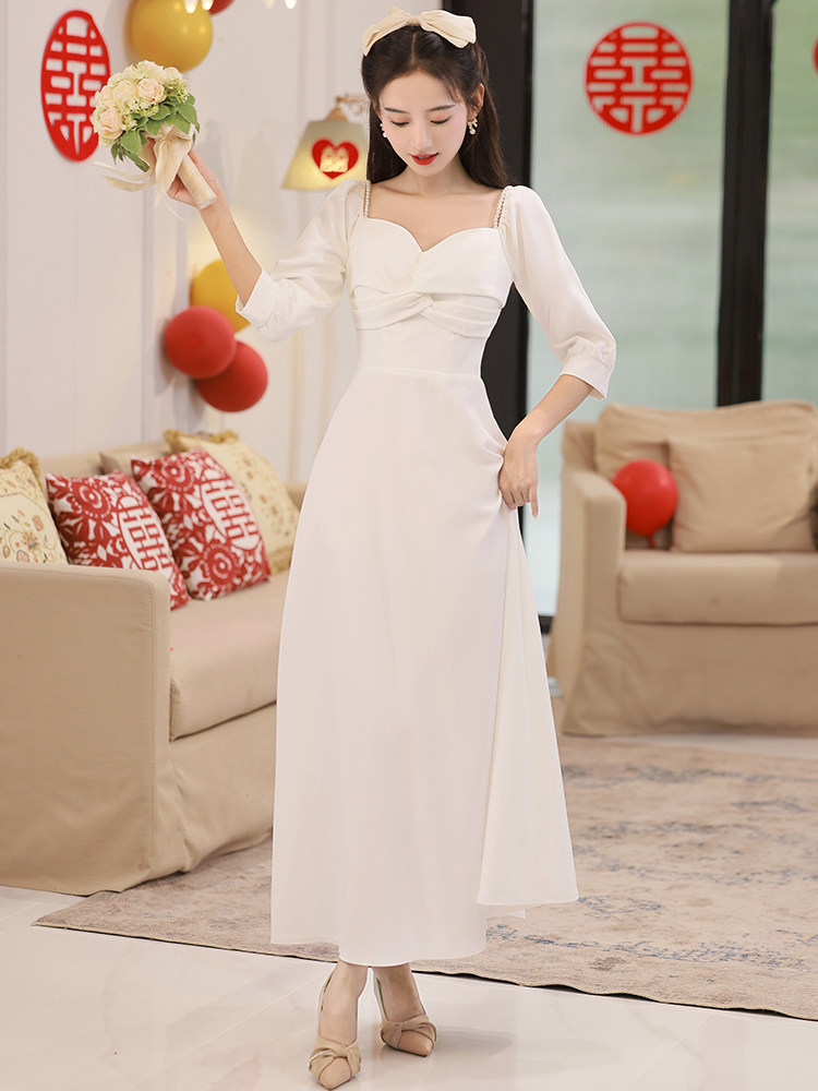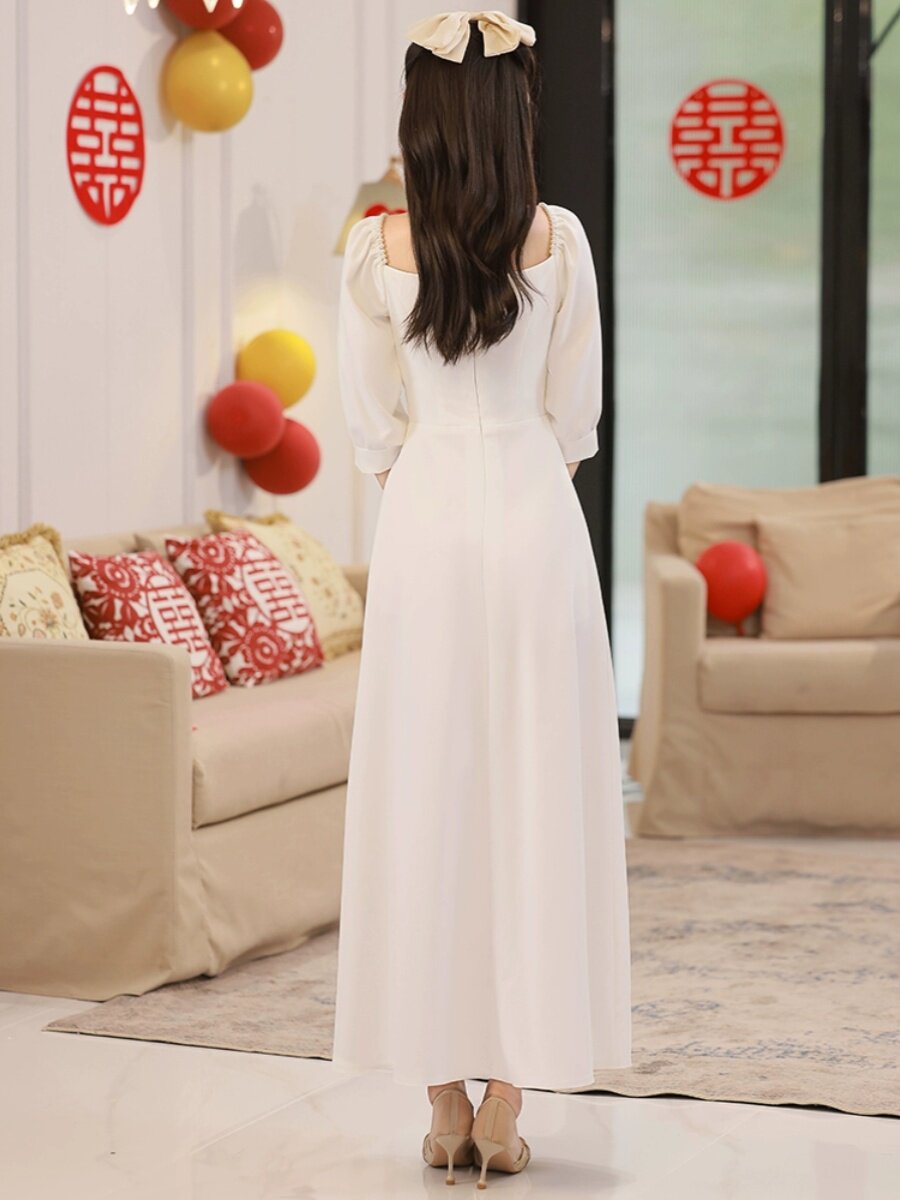 白色礼服女法式轻奢订婚领证登记连衣裙平时可穿小个子生日方领