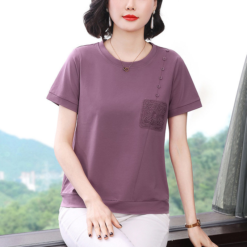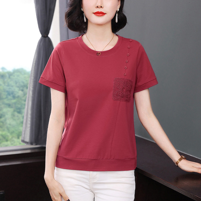 中年妈妈纯棉短袖T恤女2026夏季新款刺绣体恤衫巨好看的小众上衣