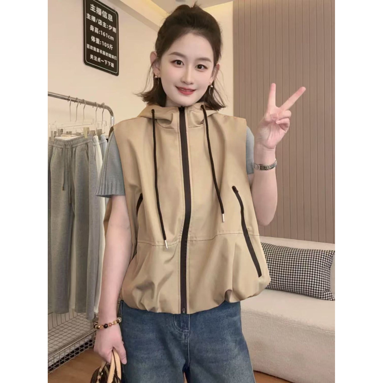 无袖卡其色上衣外搭短款马甲女款2026新款春夏季薄款背心坎肩外套