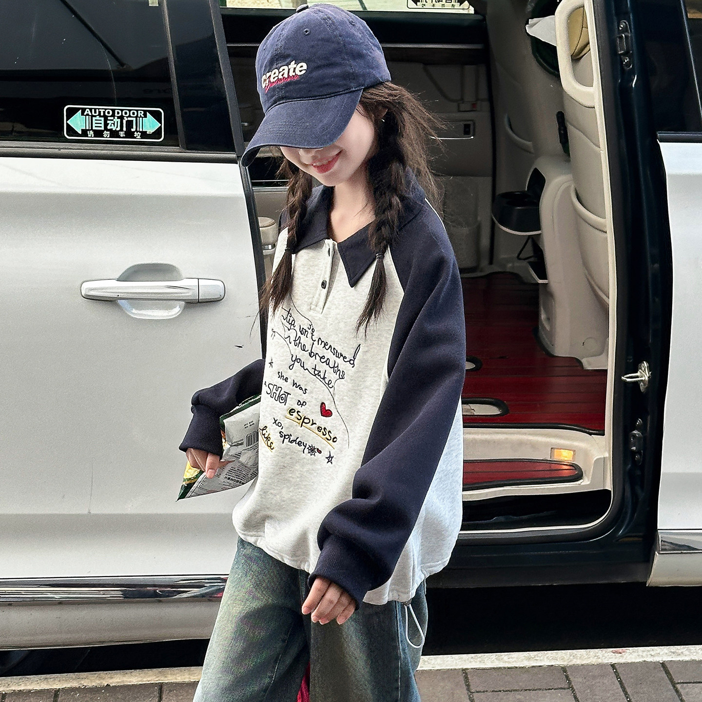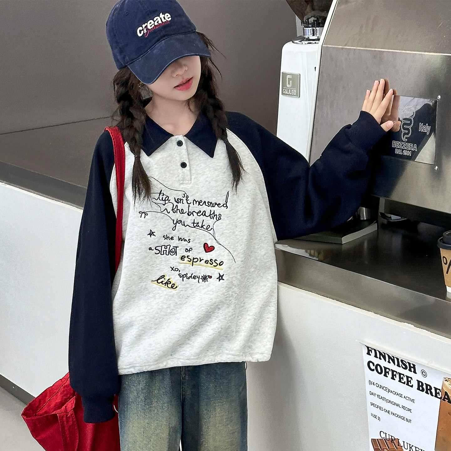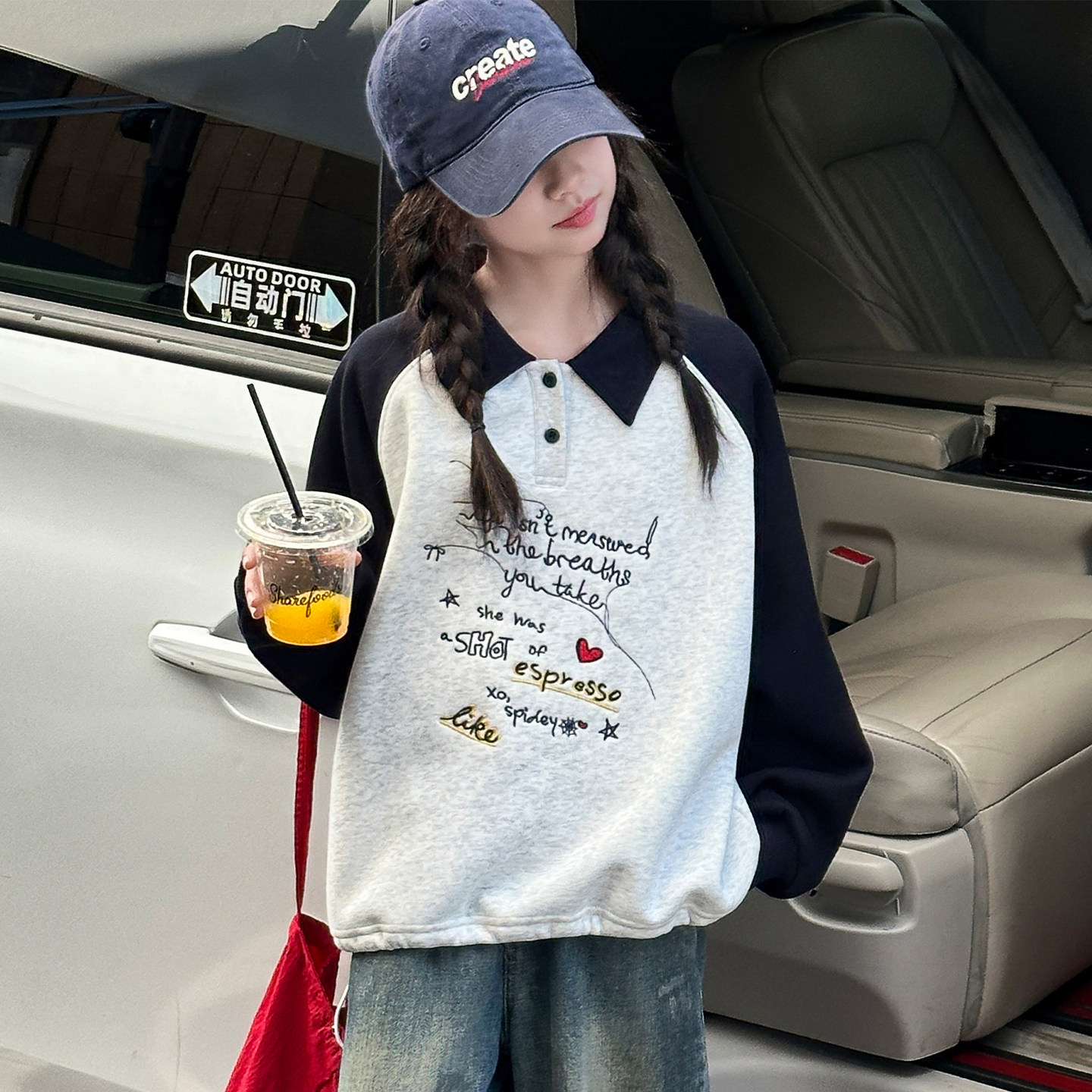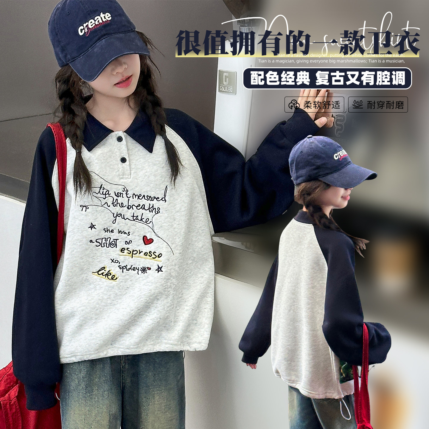 女童2026春装POLO领卫衣春秋新款宽松女中大童巨好看初中生打底衫
