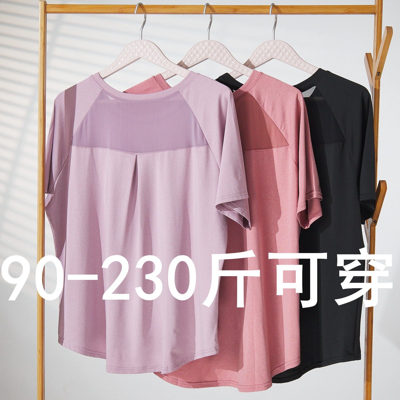 夏新款200斤大码速干排汗运动上衣女瑜伽服短袖健身衣胖mm宽松t恤
