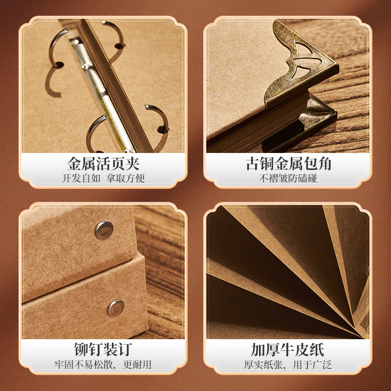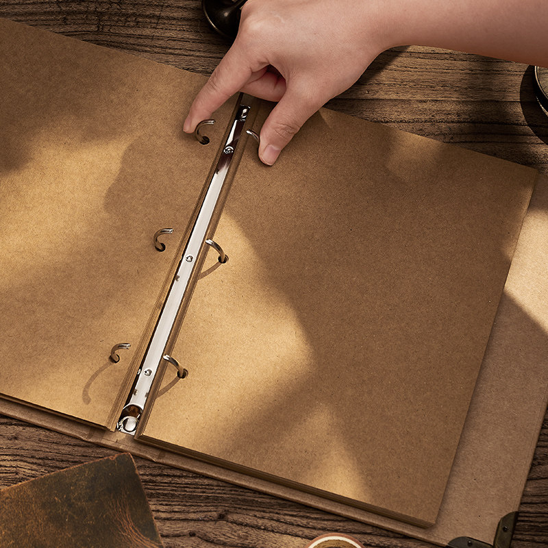 A5复古牛皮纸不硌手铁夹活页本可拆卸DIY笔记本本子手账本女生文艺旅行旅游日记本简约学生高颜值精致记事本