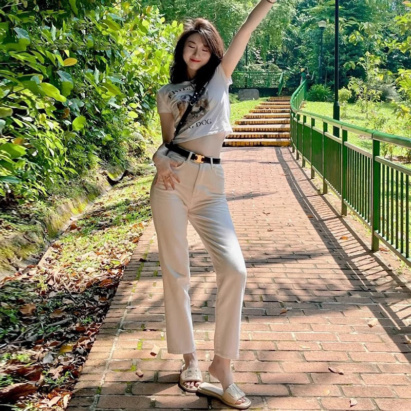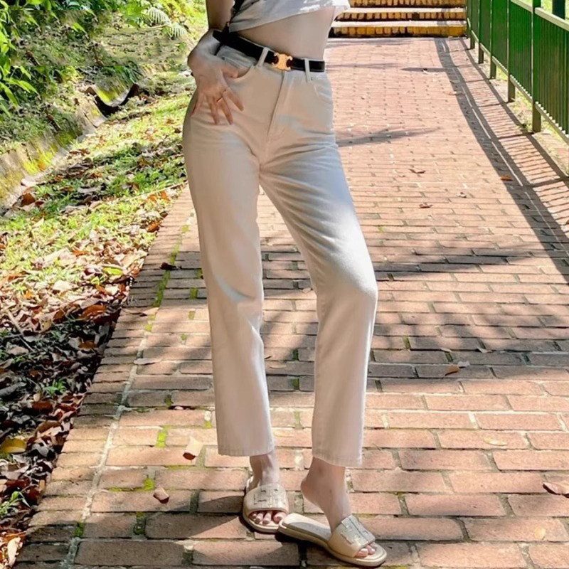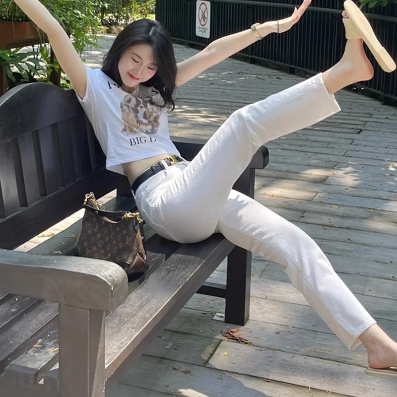 白色九分直筒牛仔裤女2026夏季新款高腰百搭弹力修身显瘦烟管裤子