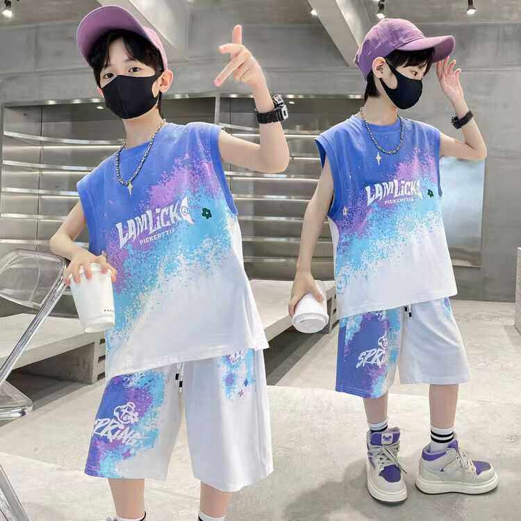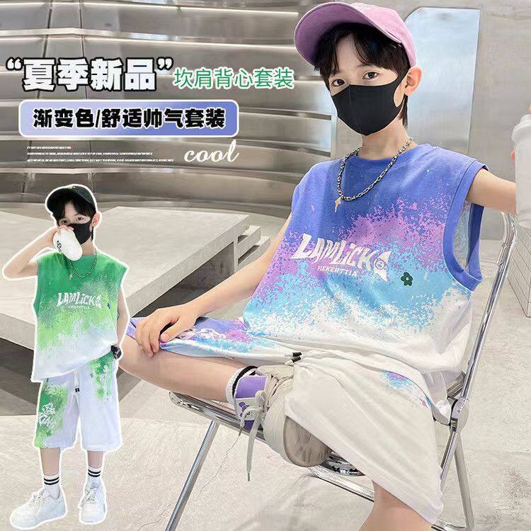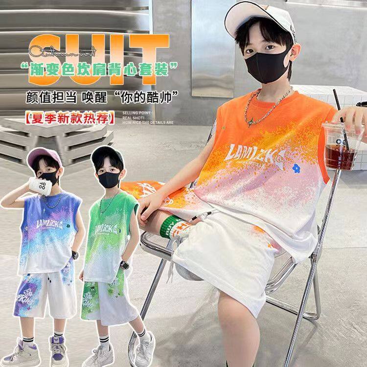 夏季男童无袖速干运动套装2026新款儿童宽松薄款透气篮球服两件套