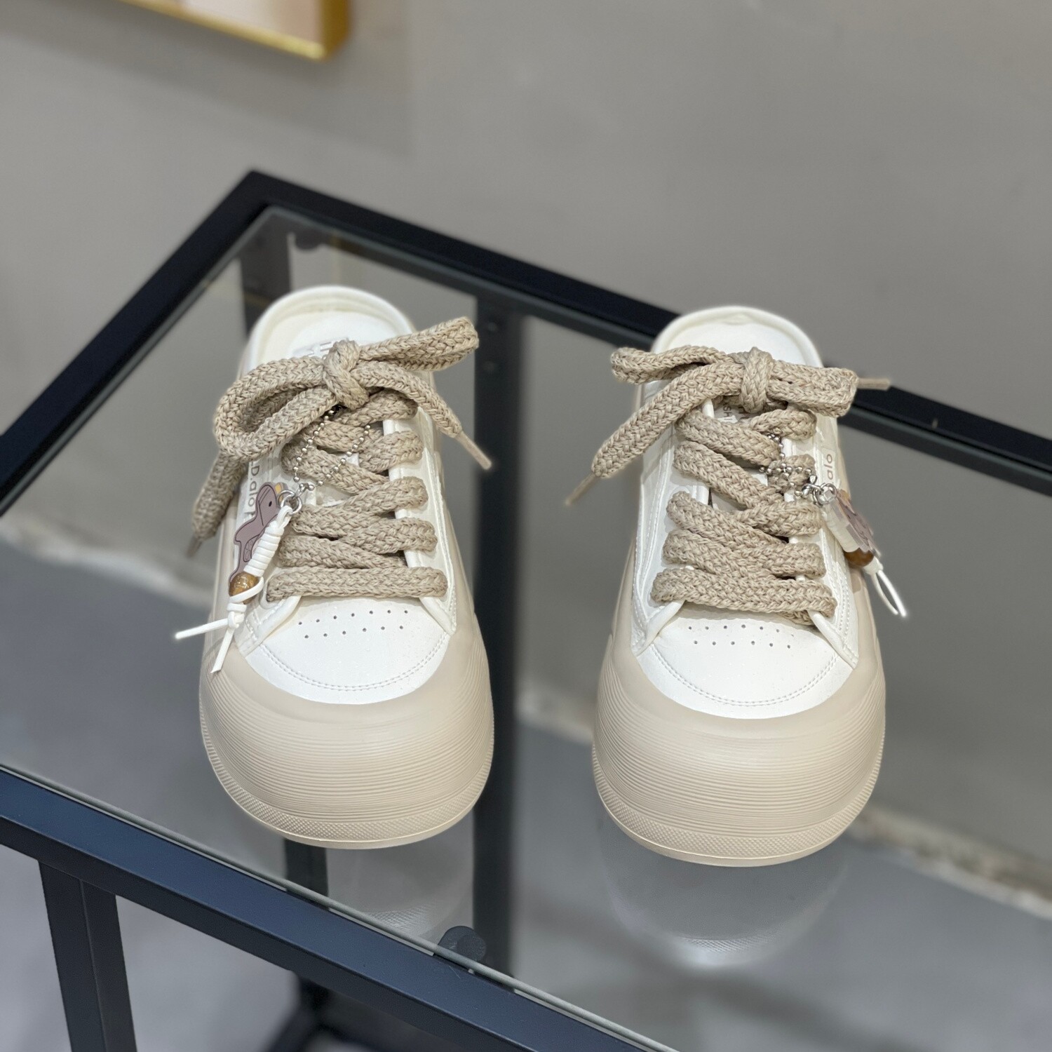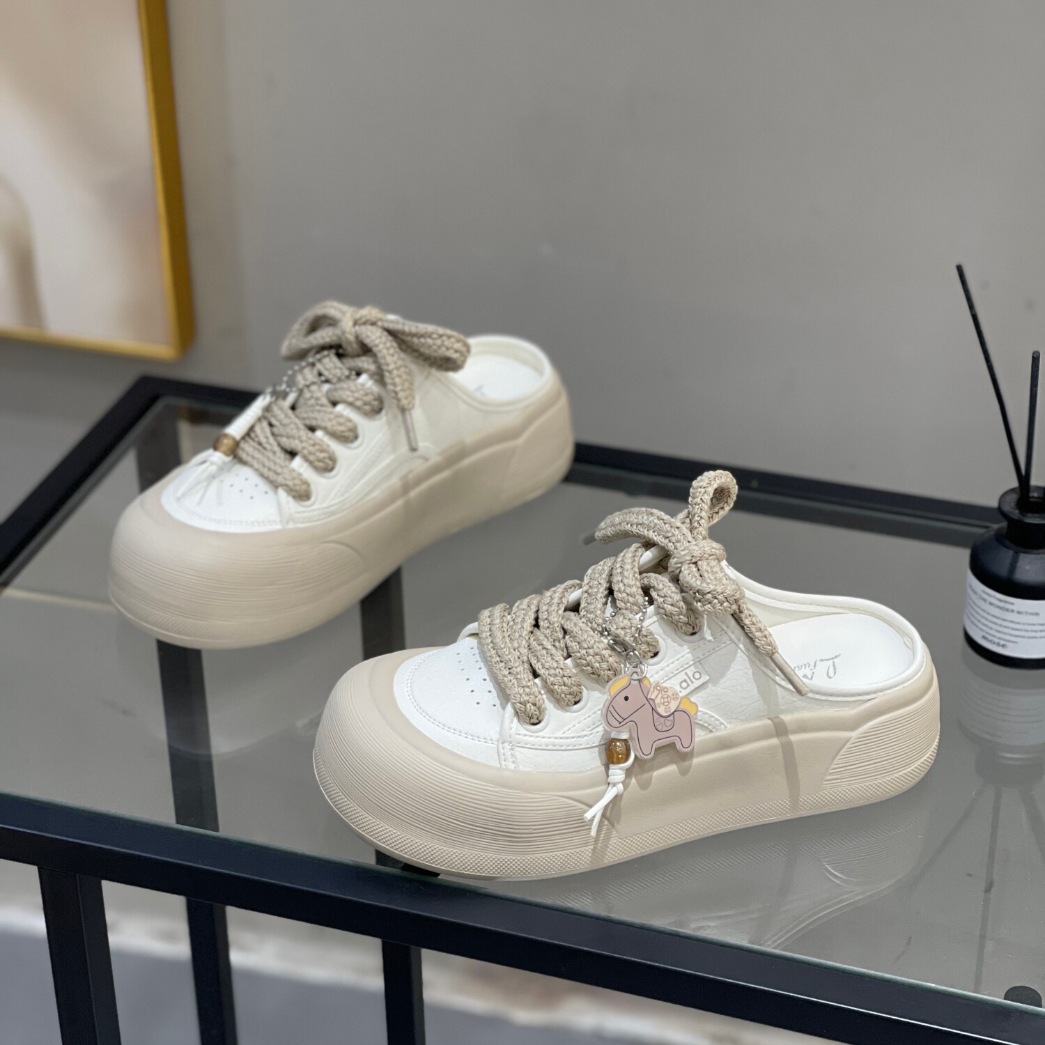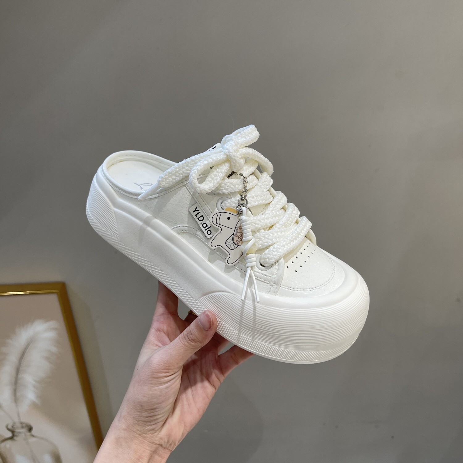 超火复古包头半拖鞋女2026夏季新款厚底一脚蹬懒人小白鞋休闲板鞋