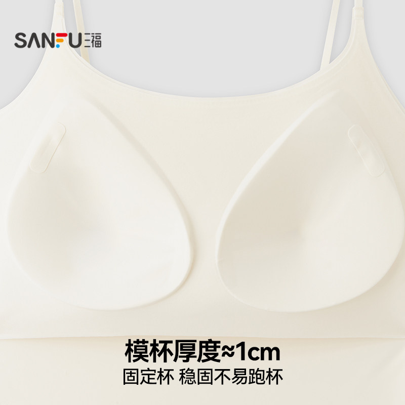 三福带杯吊带背心女简约时尚休闲细肩带修身内搭外穿舒适长款上衣