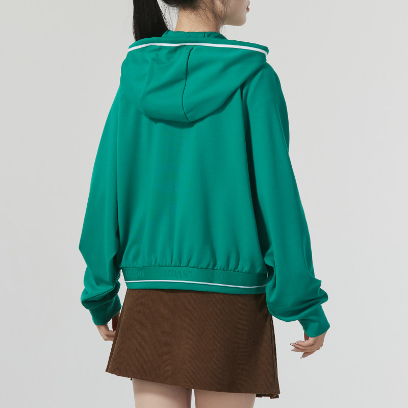 阿迪达斯外套女24春季新款梭织休闲运动服绿色连帽夹克衫JE3604
