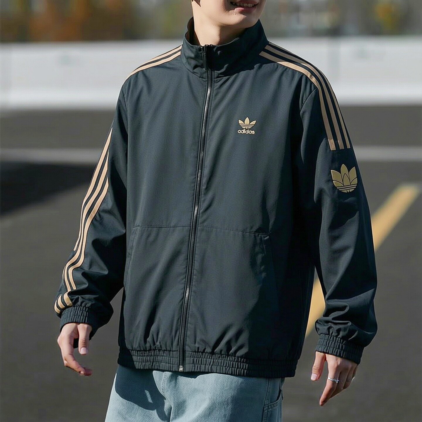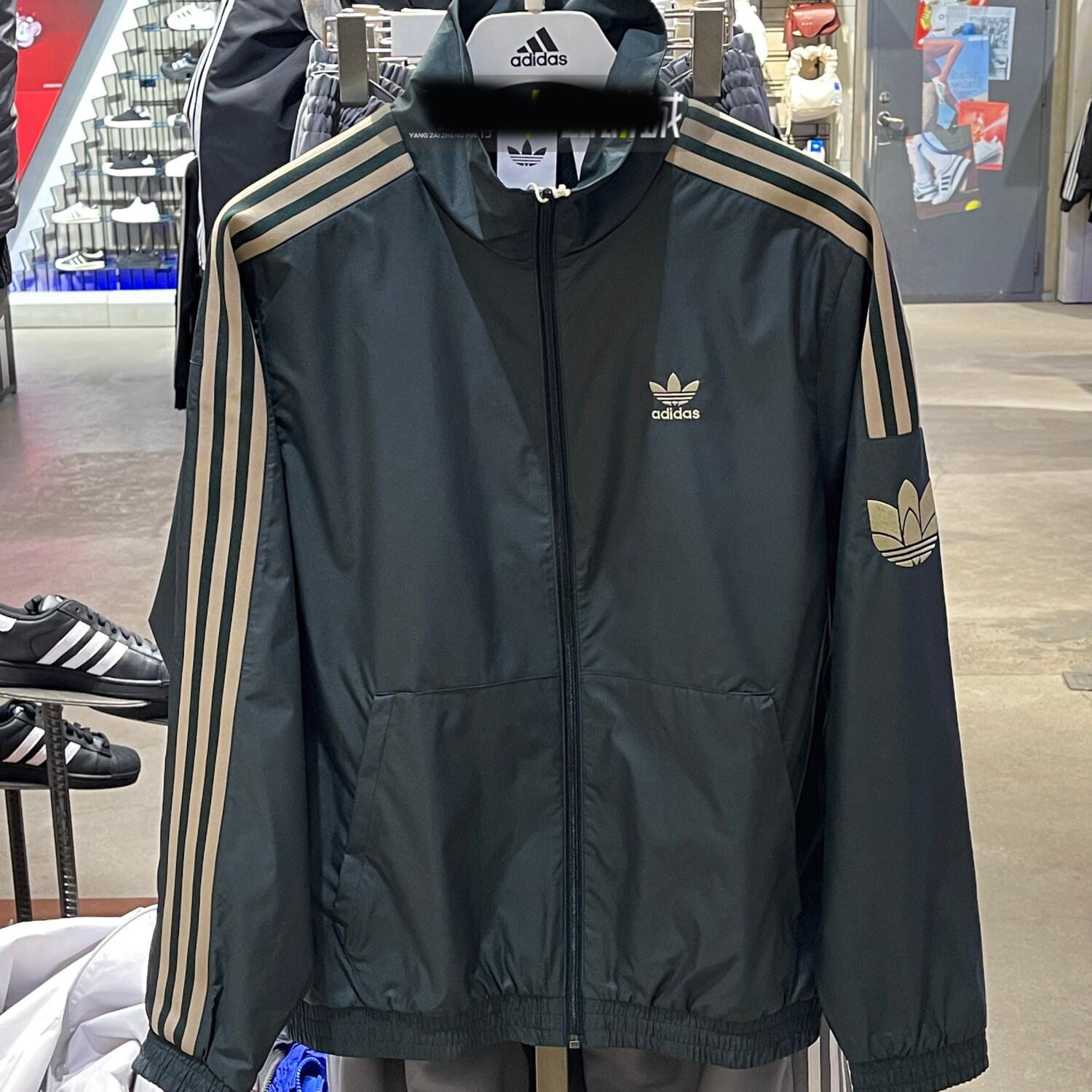 阿迪达斯三叶草外套男春季新款复古绿色美式棒球服立领夹克