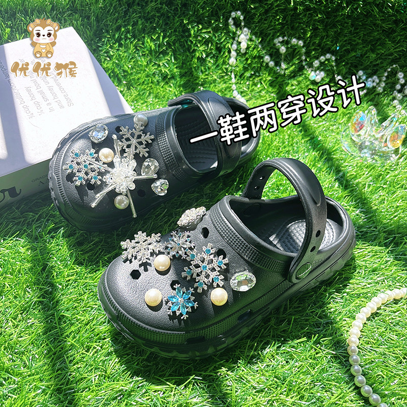女童水晶雪花洞洞鞋女款幼儿童小女孩可爱公主拖鞋2026新款夏季