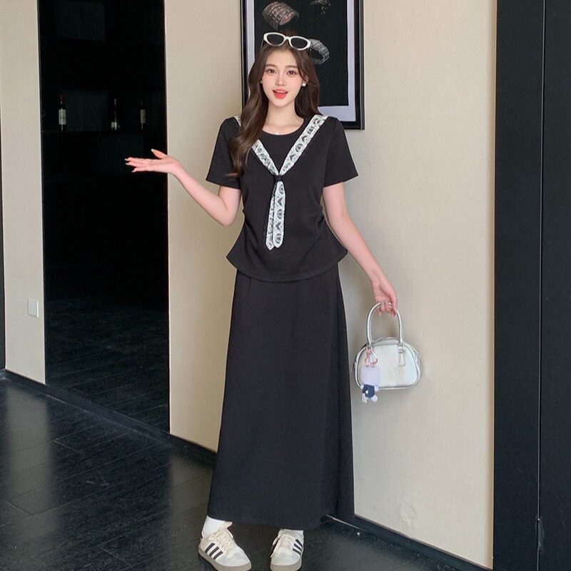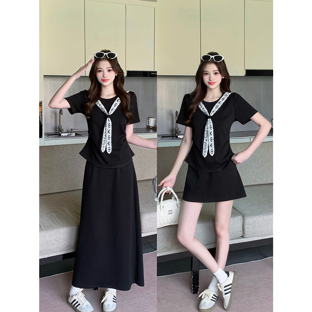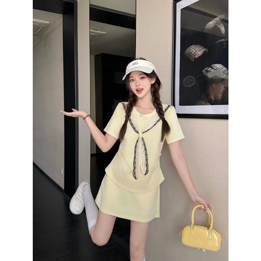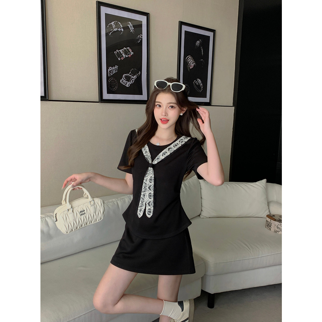 2026夏装新款胖mm大码女装法式休闲蕾丝披肩短袖长短款半身裙套装