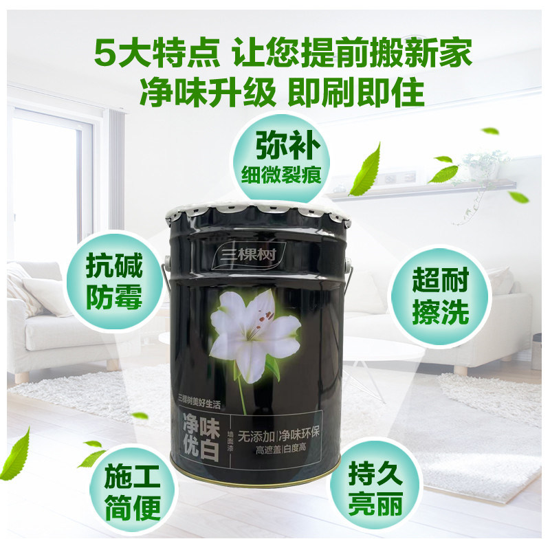 三棵树内墙乳胶漆净味优白墙面漆室内自刷哑光家用水性环保型涂料