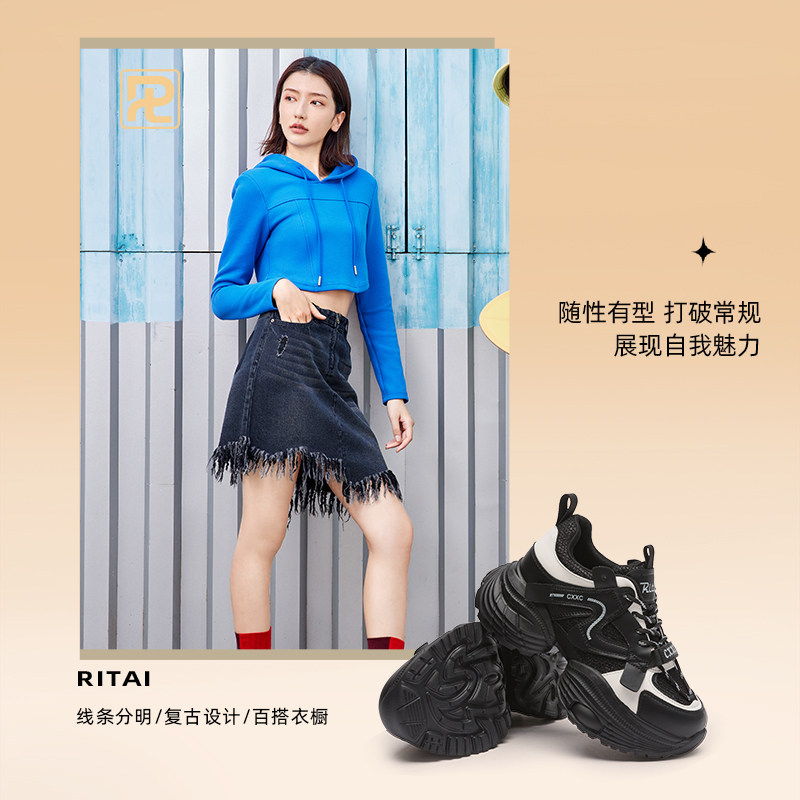 日泰老爹鞋女秋季新款增高小个子厚底运动鞋撞色时尚休闲鞋女鞋子