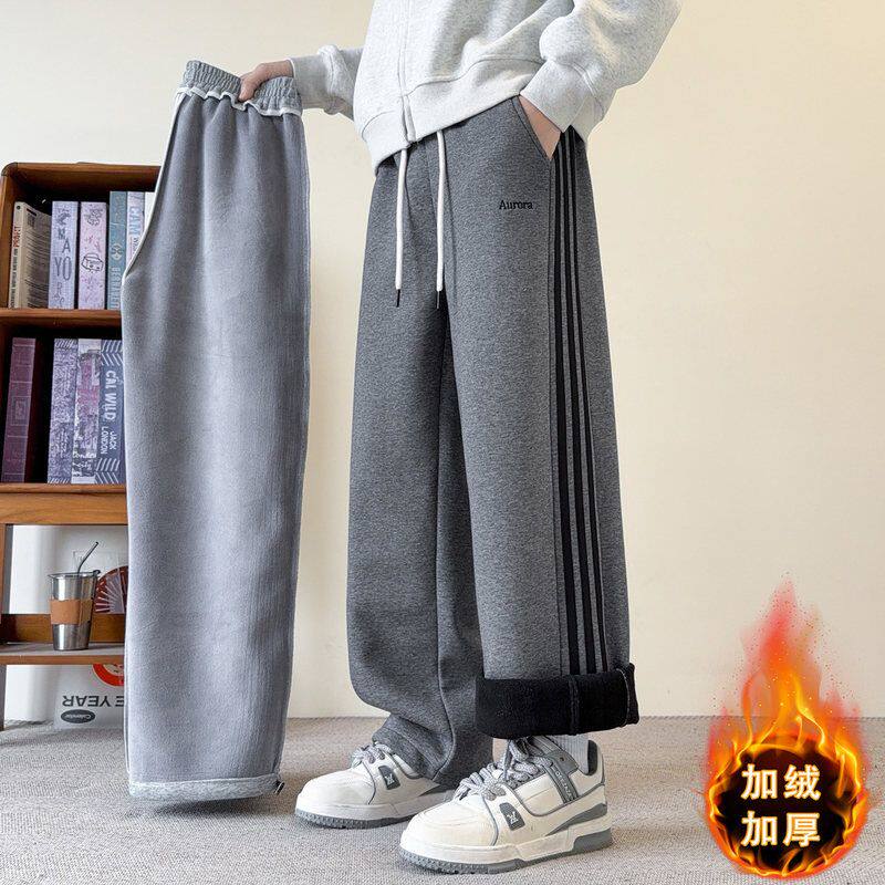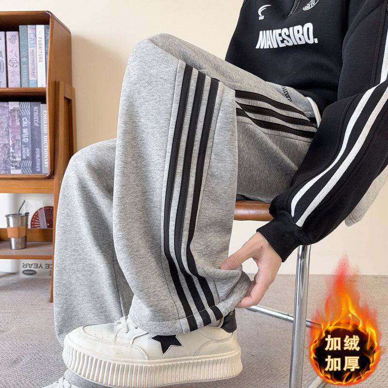 秋冬款休闲长裤子男初中高中学生加绒加厚青少年大童帅气运动卫裤