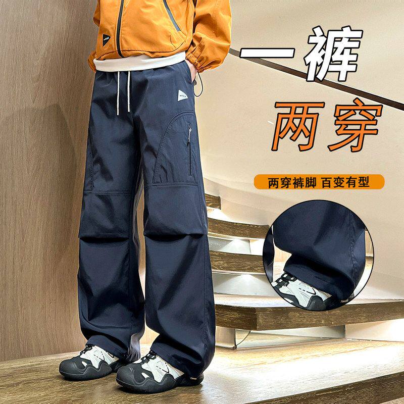 秋冬款加绒加厚工装裤子男孩青少年学生帅气大童直筒休闲运动长裤