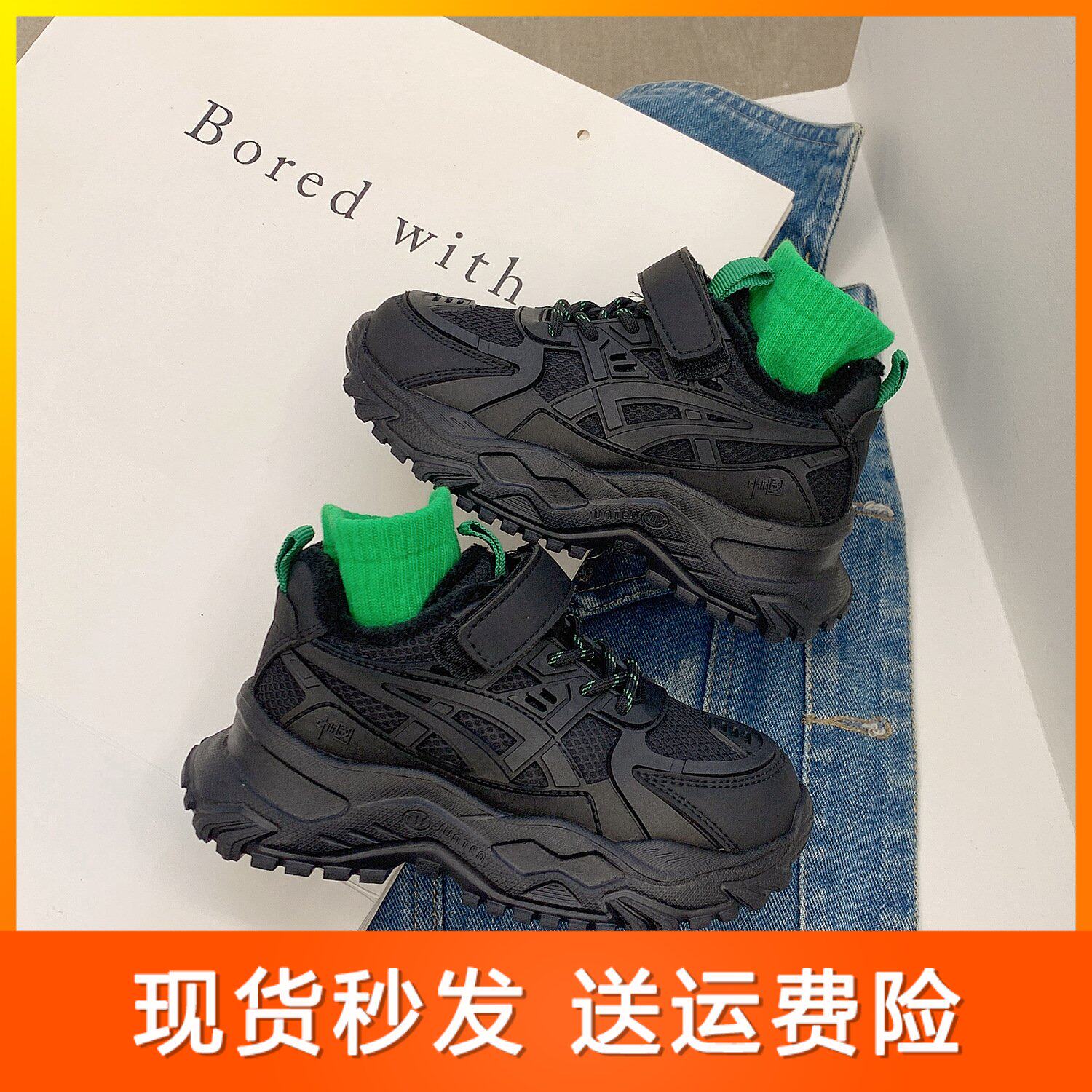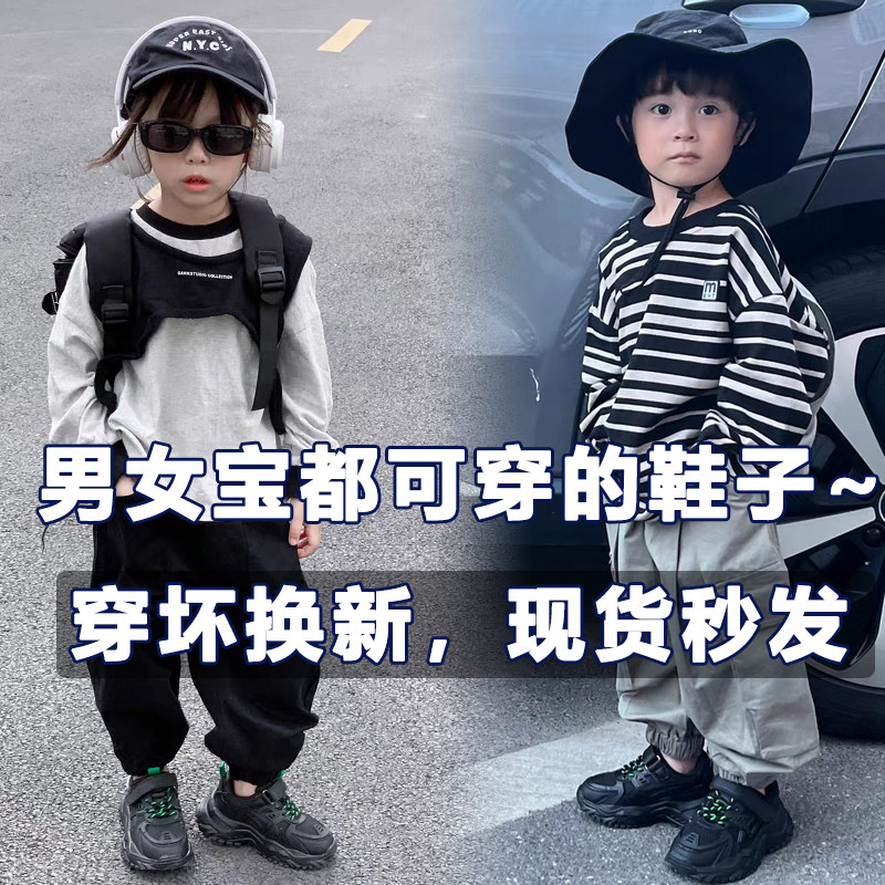 儿童运动鞋2025春秋新款女童软底鞋子休闲黑色保暖潮牌男童老爹鞋