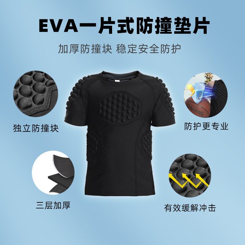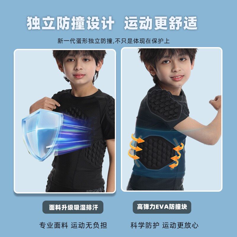 儿童篮球蜂窝防撞短袖衣青少年紧身橄榄球足球训练服防摔运动护具