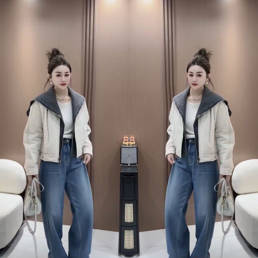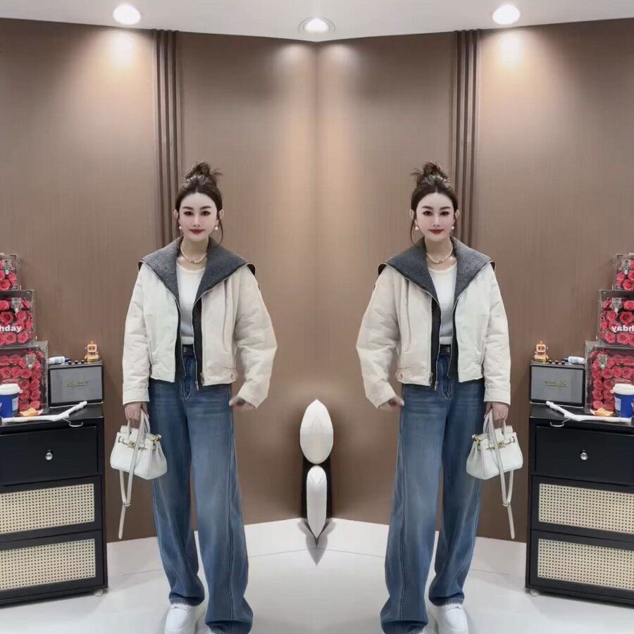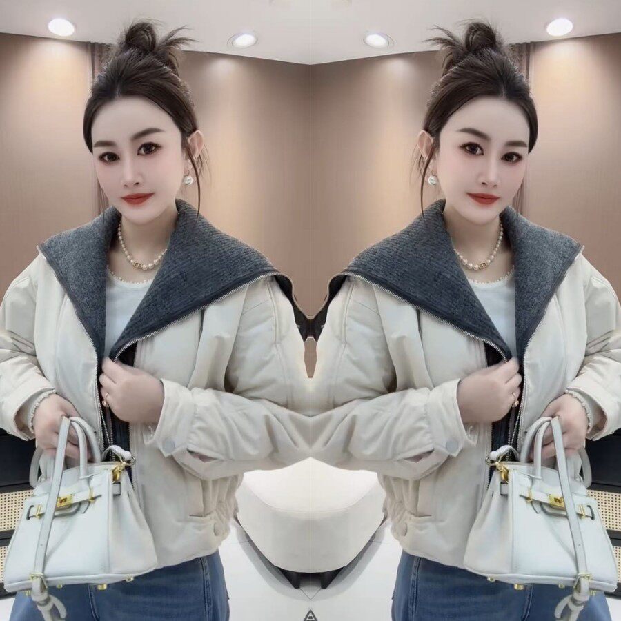 韩版披肩领双拉链短款夹棉外套2026早春新款简约休闲日常百搭潮女