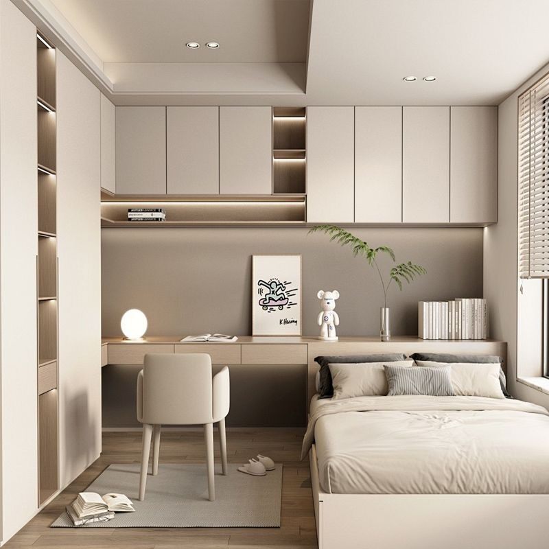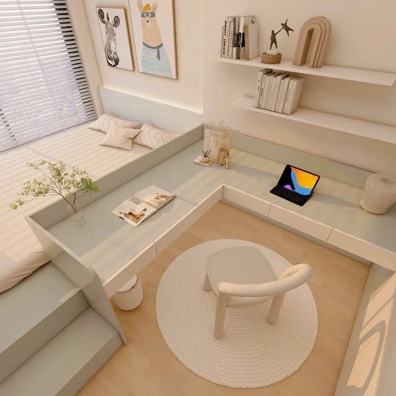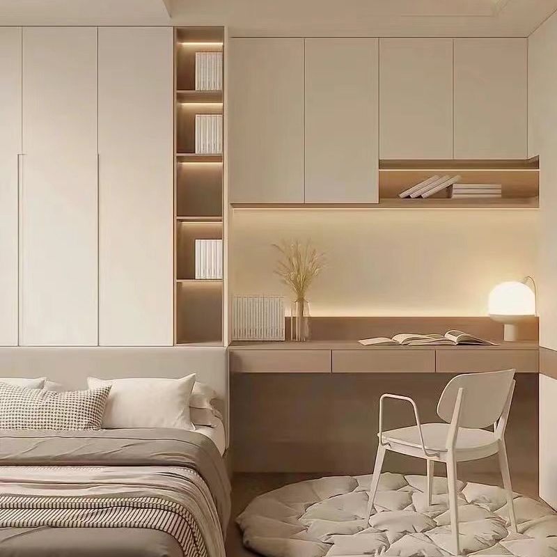 榻榻米小户型定制衣柜书桌一体储物收纳柜奶油风榻榻米儿童房卧室