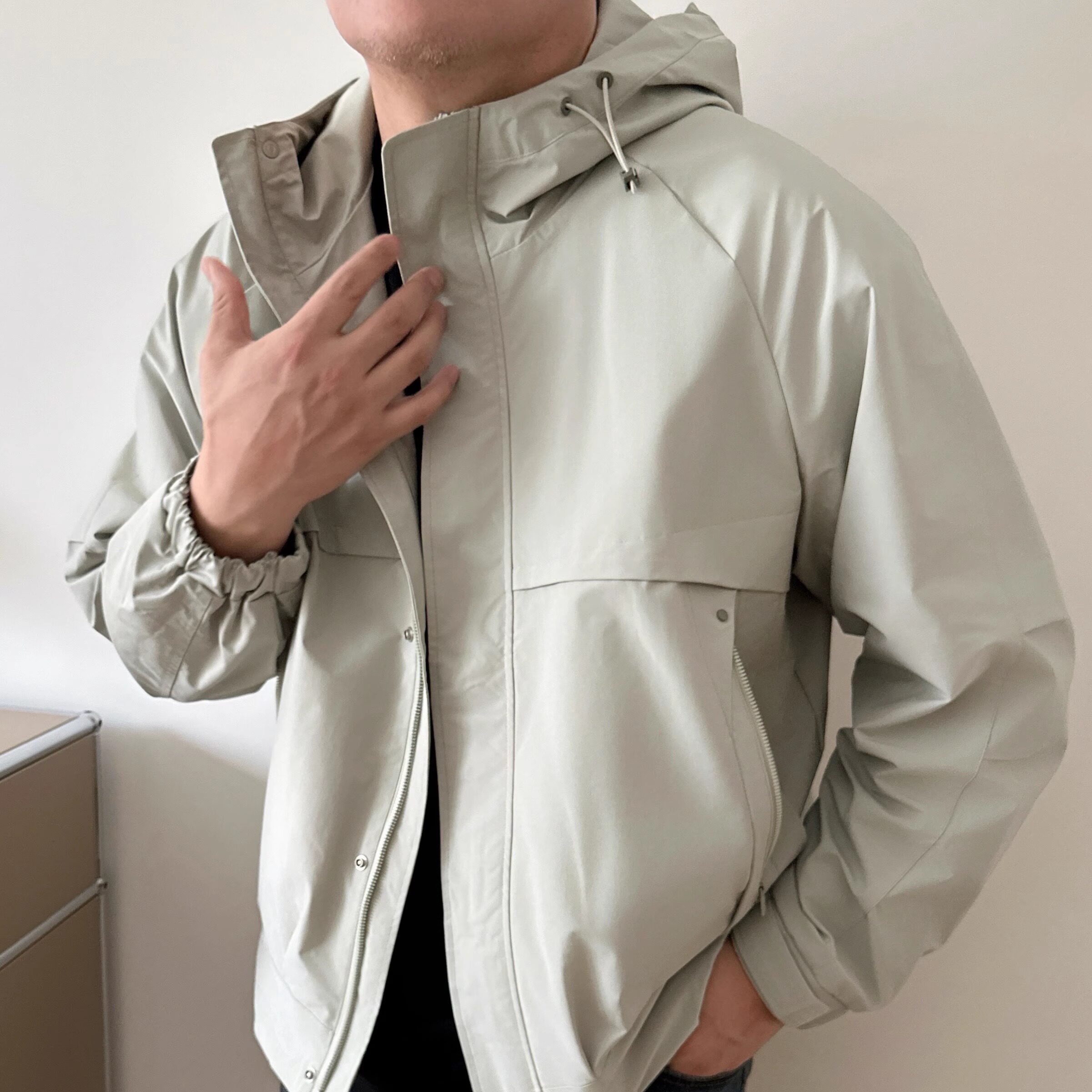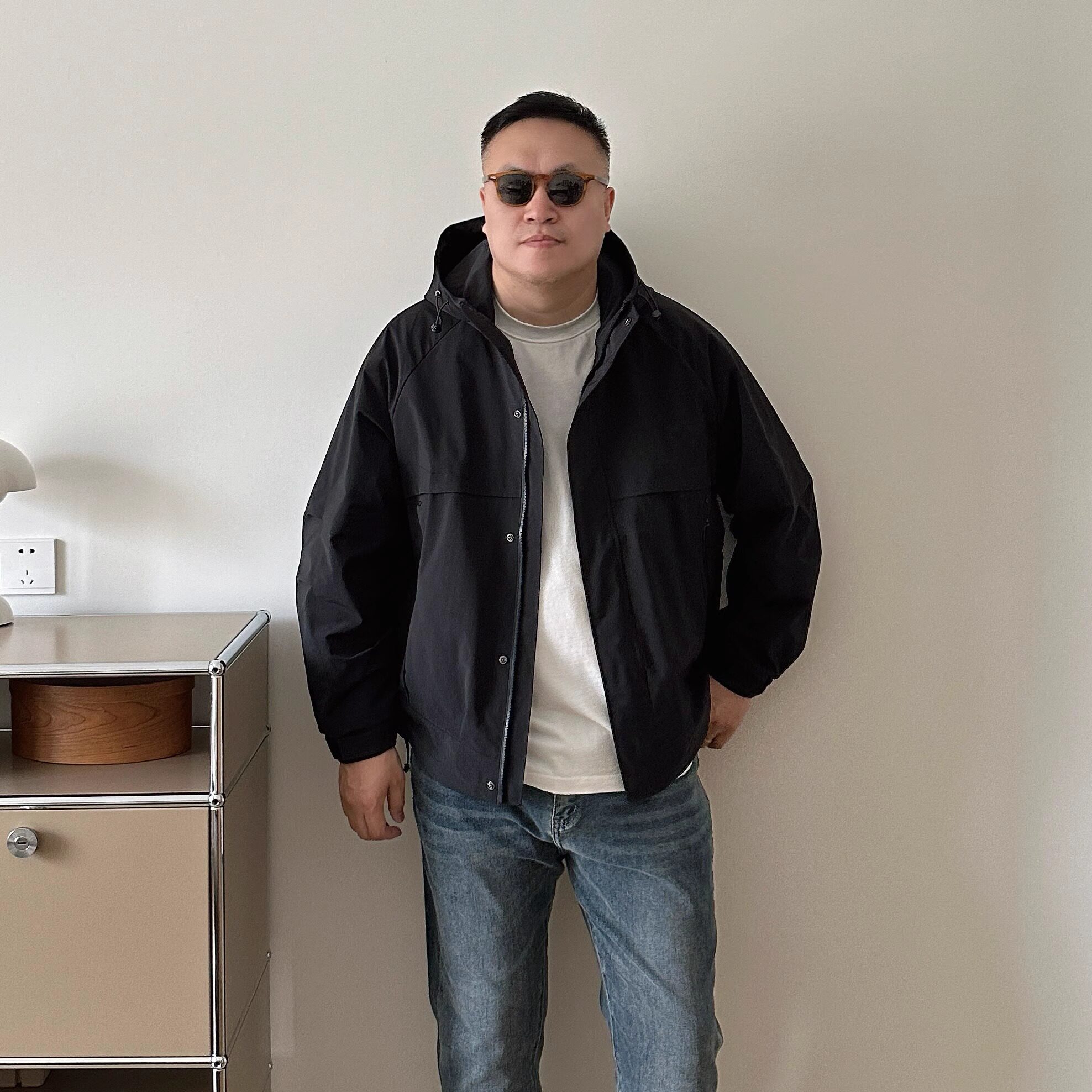 DAEVU大码男装春季廓版风衣浅灰色胖子加肥加大男款连帽夹克外套