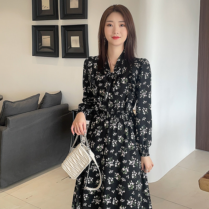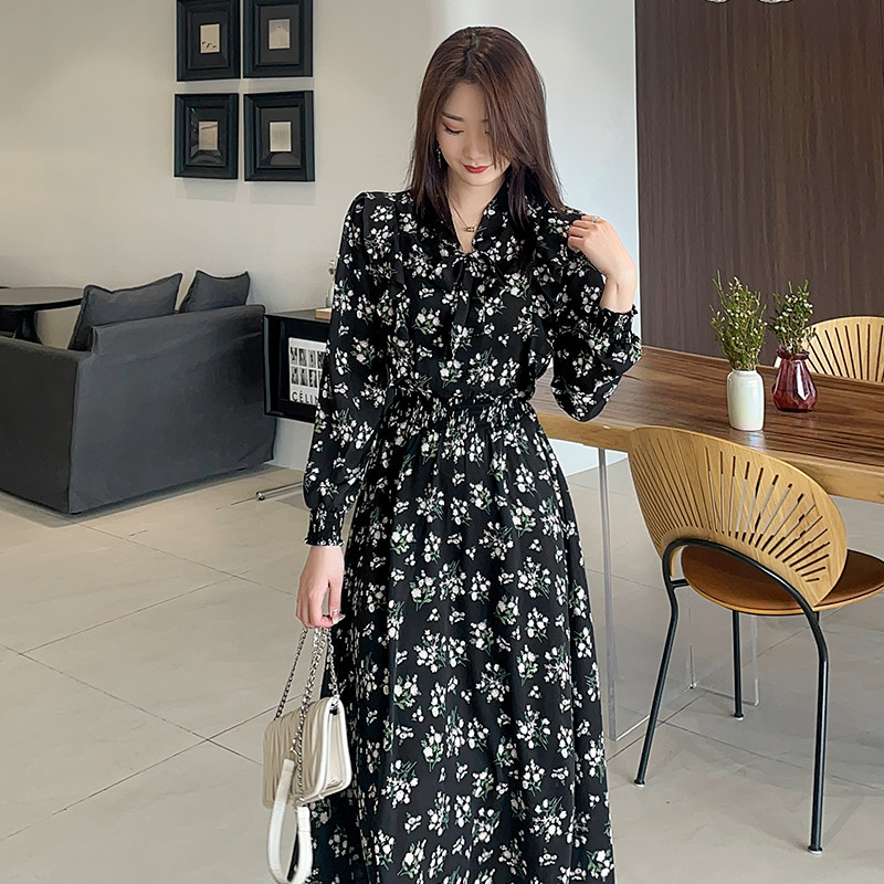 减龄新款碎花雪纺连衣裙女长款裙子收腰显瘦气质森系大码春夏韩版