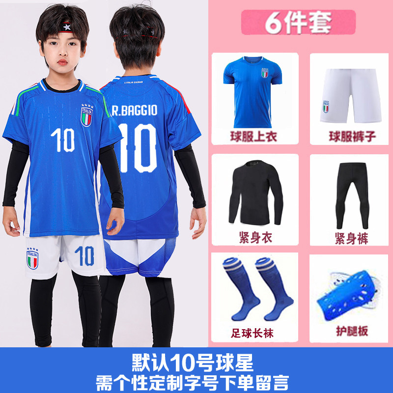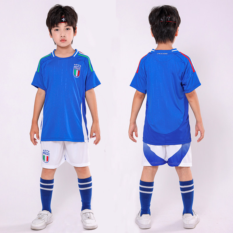 欧洲杯意大利蓝色儿童足球队服套装男女运会定制比赛训练球衣校服