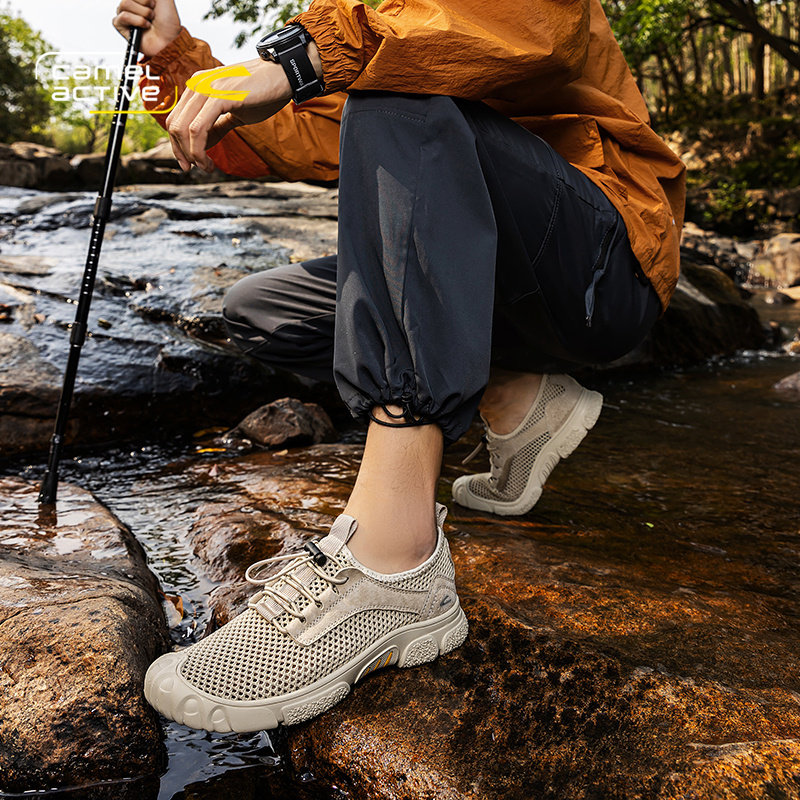 骆驼动感网面鞋男春夏季透气爸爸鞋防滑户外运动溯溪鞋一脚蹬男鞋