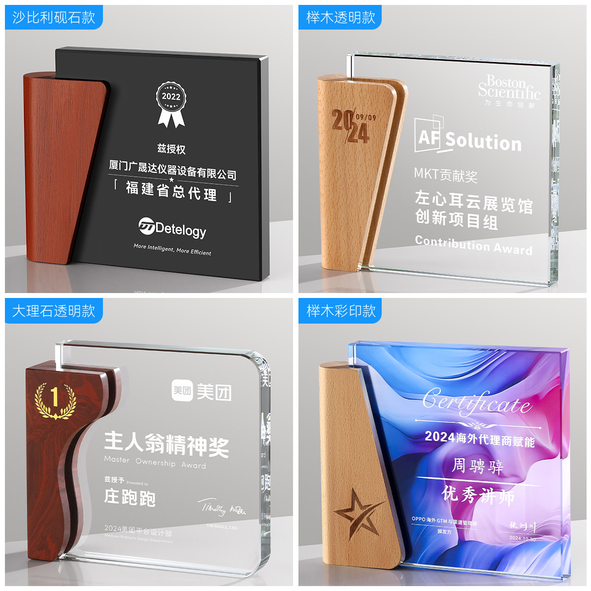 实木水晶奖杯定制定做奖牌创意质年会颁奖商授权牌刻字订制作