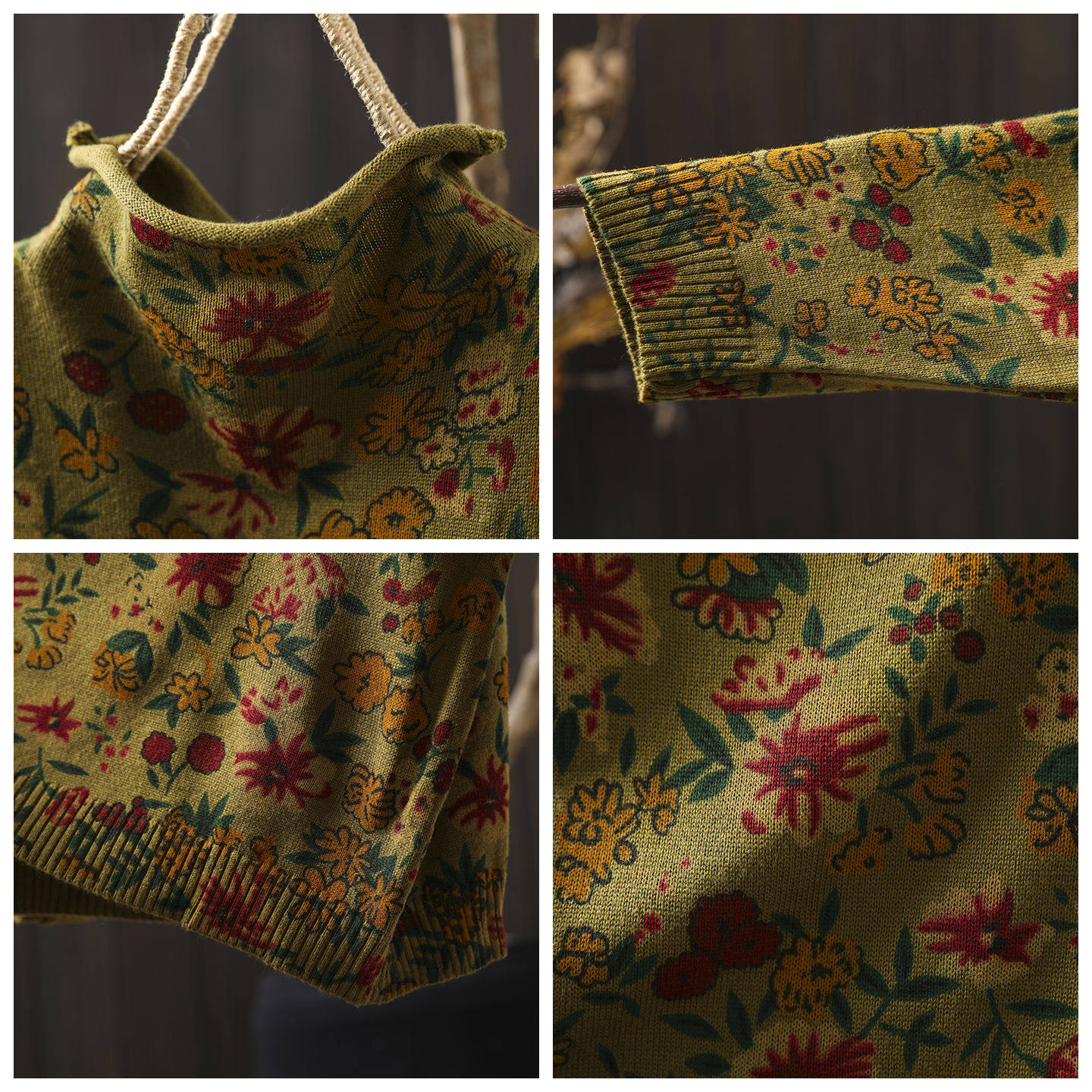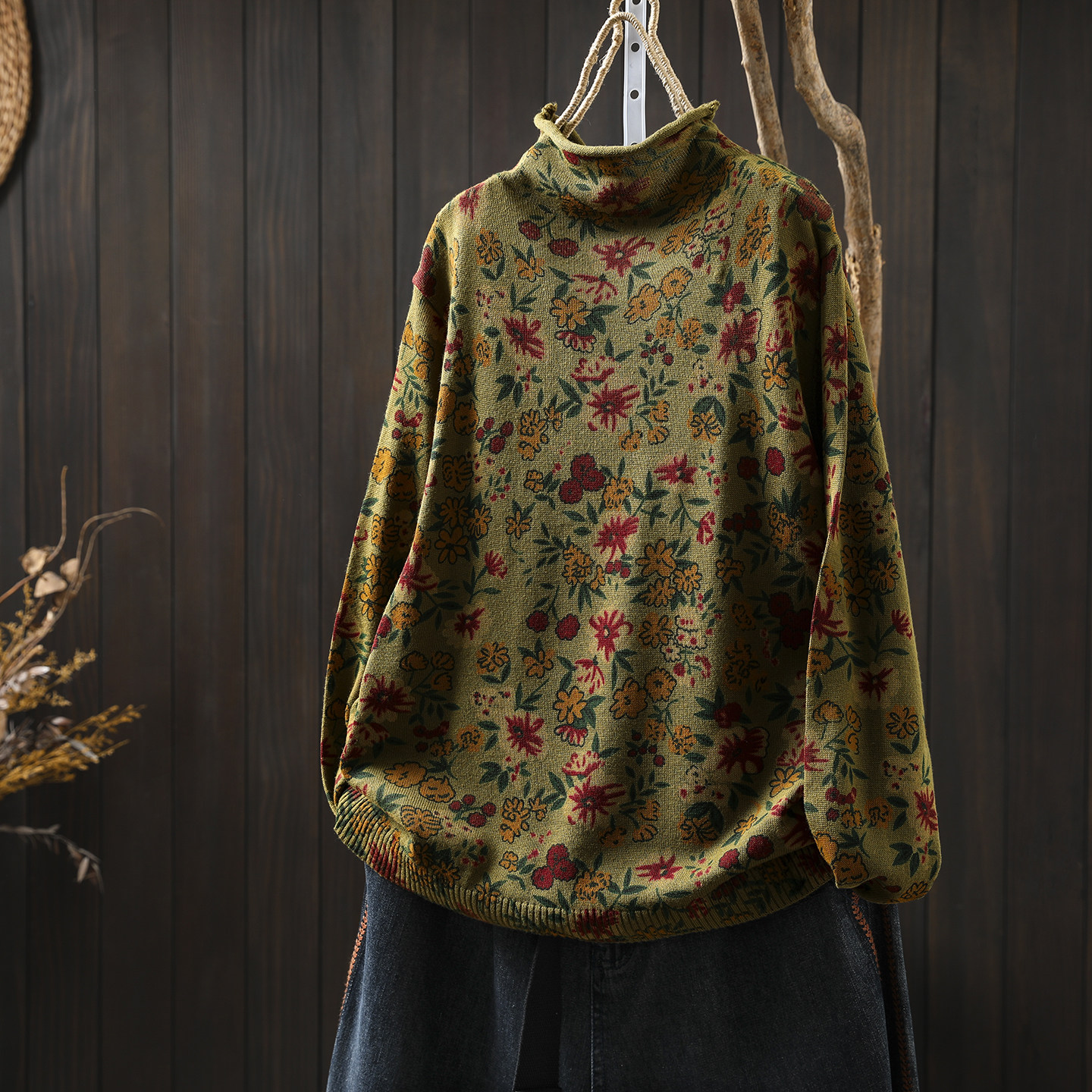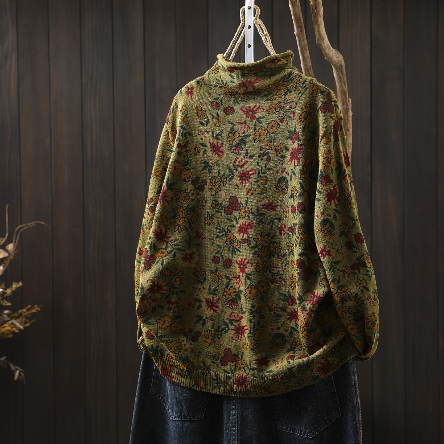 半高领毛衣女款2026新款秋冬季碎花印花巨好看宽松薄款针织小上衣