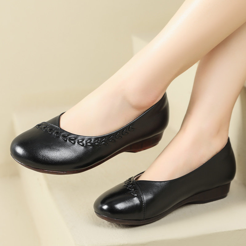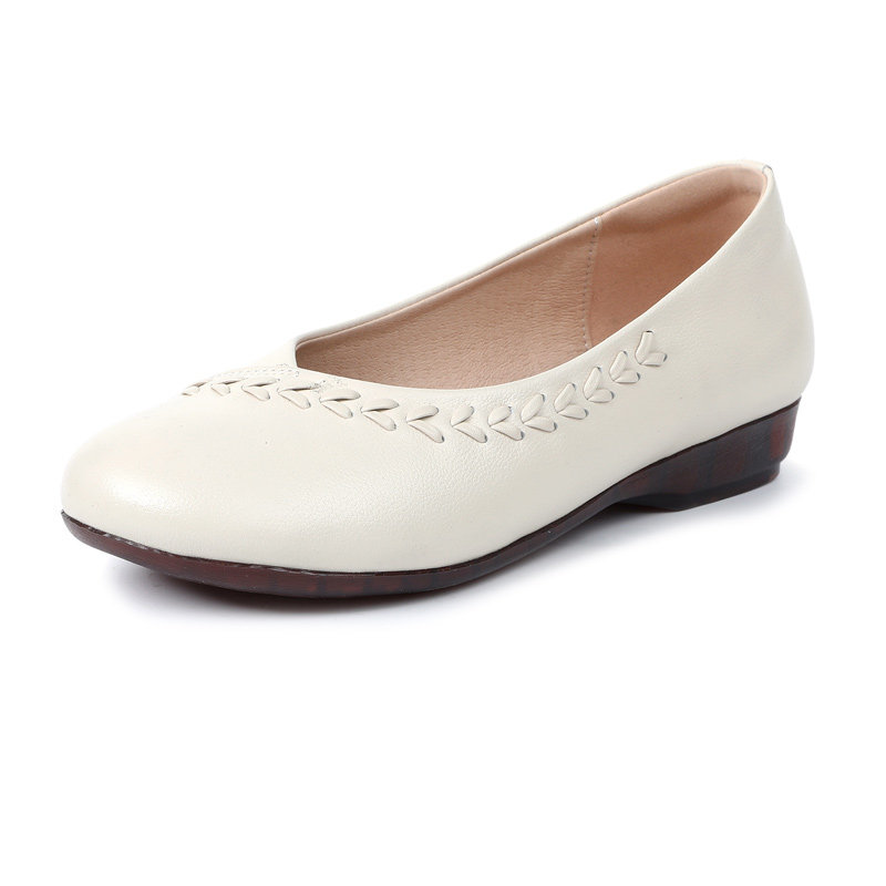 真皮软底妈妈鞋春夏款舒适不累脚单鞋百搭平底小皮鞋大码浅口女鞋