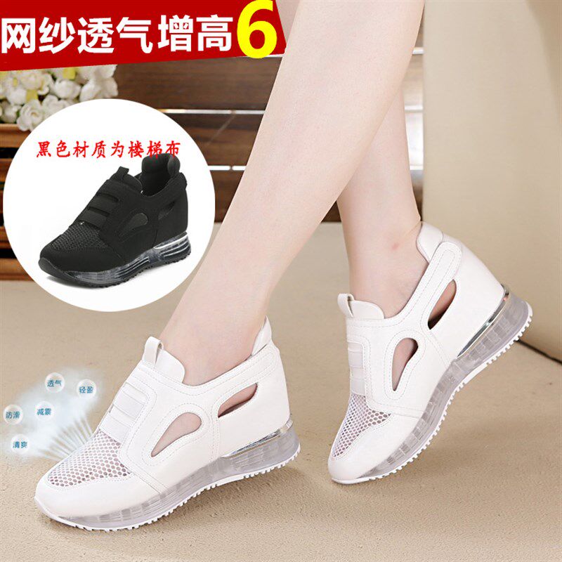 女土运动鞋休闲鞋新款春夏季黑色内增高女鞋透气网面坡跟夏天网鞋