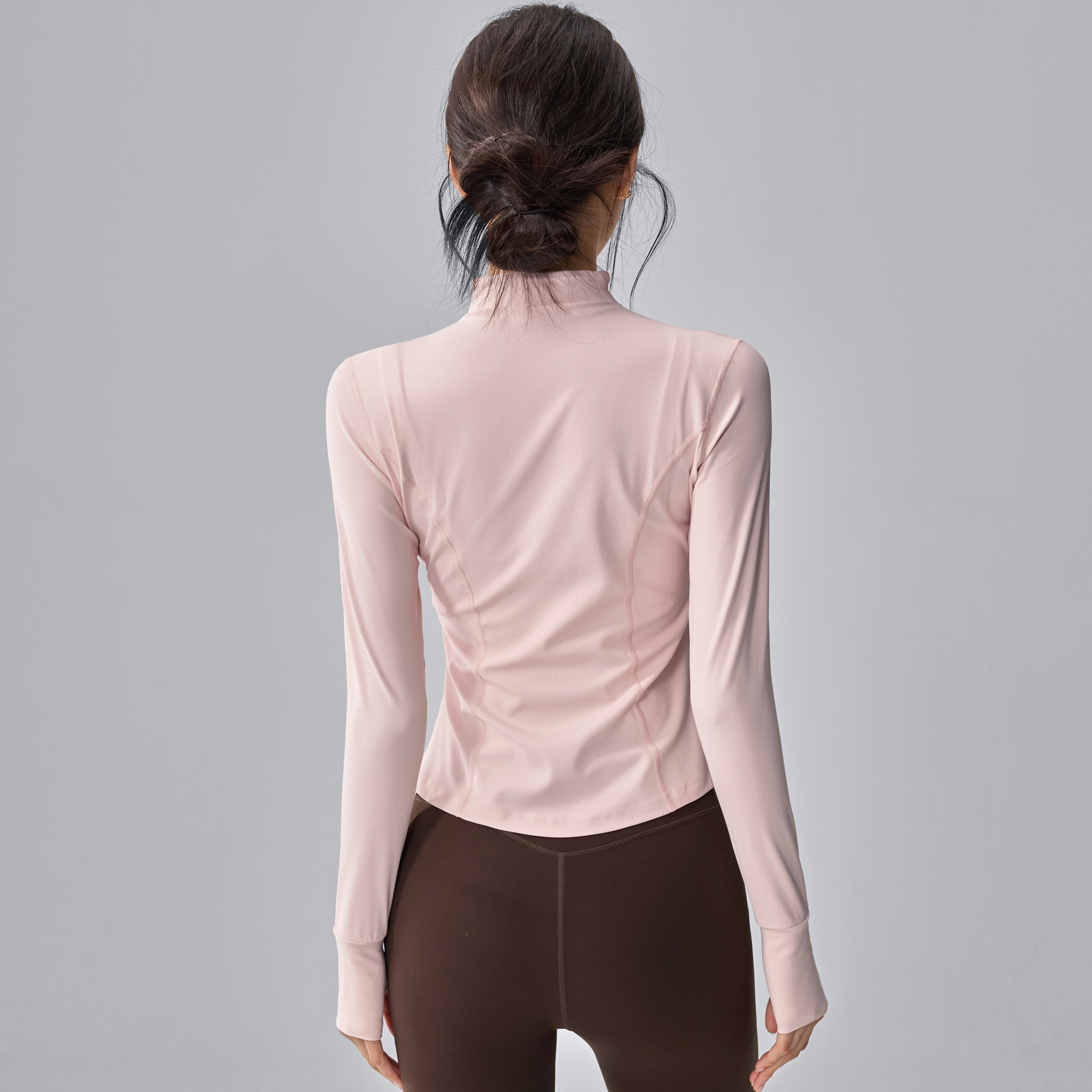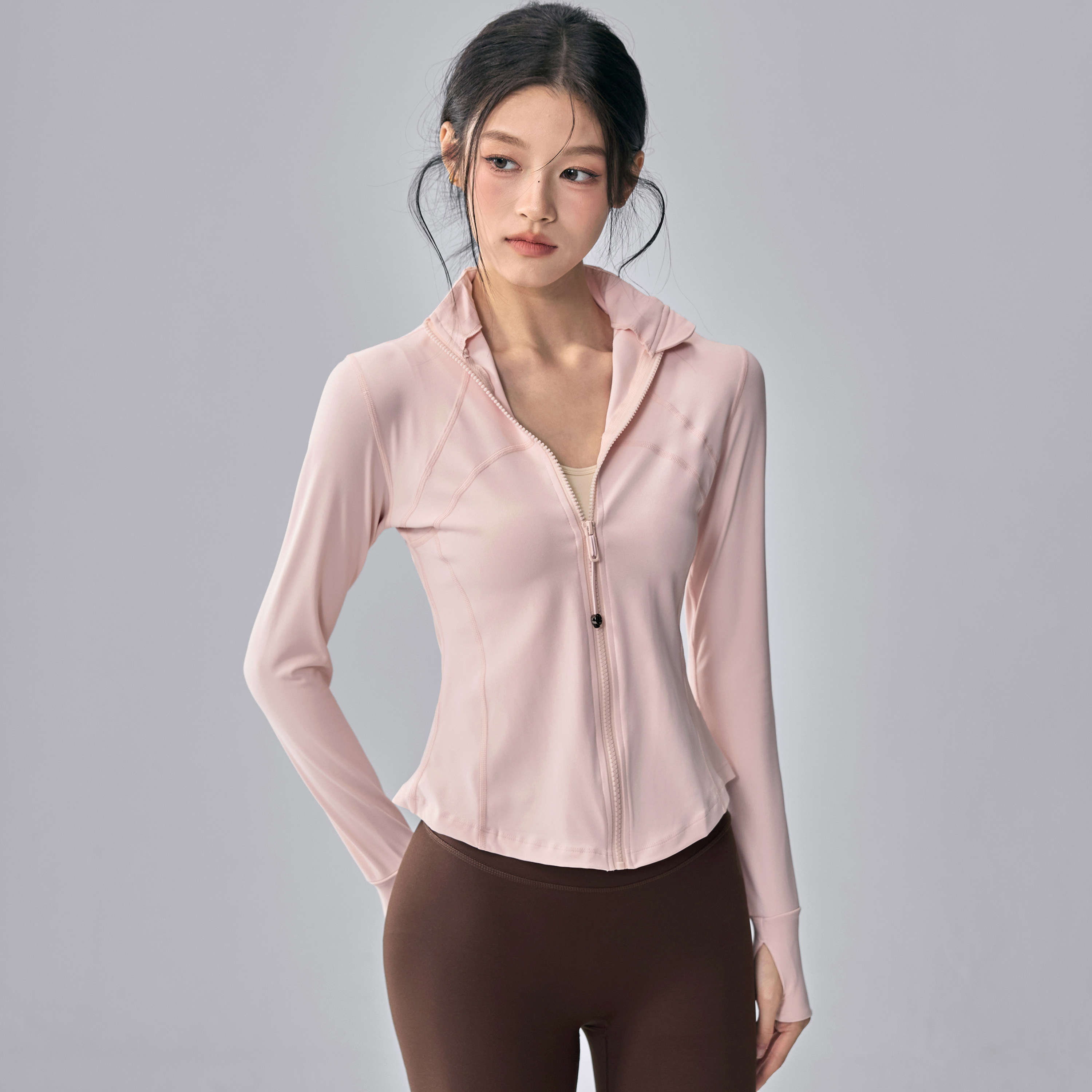健身女孩立领瑜伽服外套修身显瘦普拉提训练跑步粉色运动上衣长袖