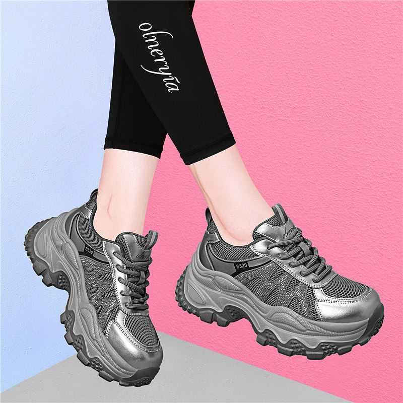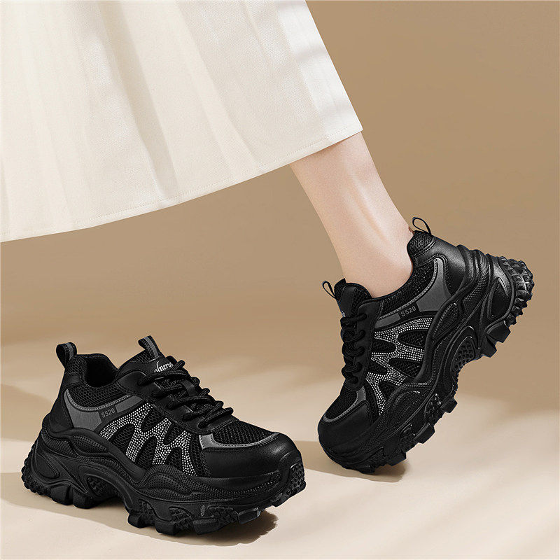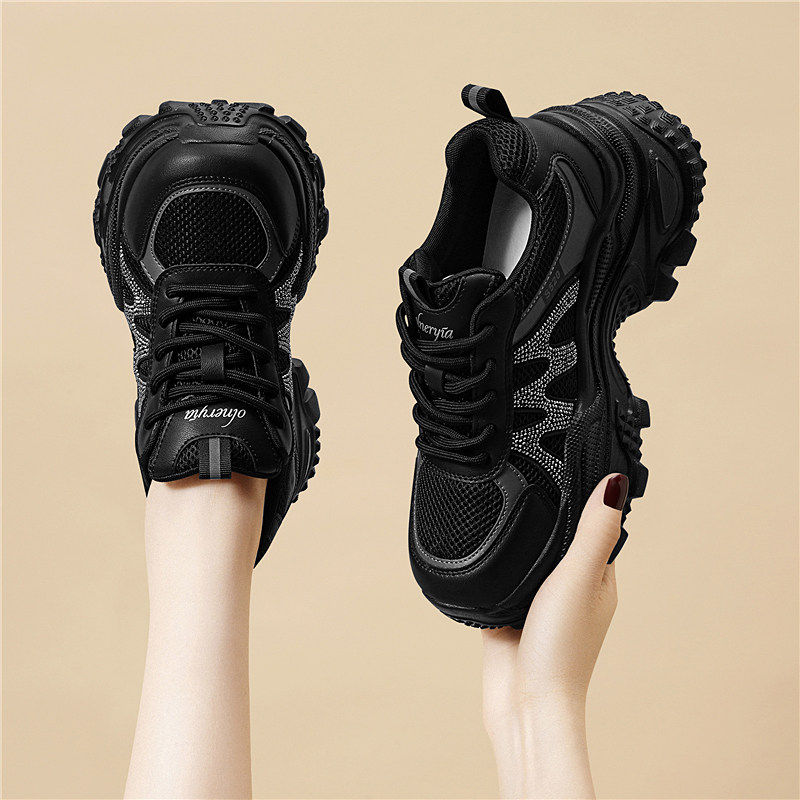黑色老爹鞋女款2026新款春秋季厚底增高显脚小个子软底休闲运动鞋