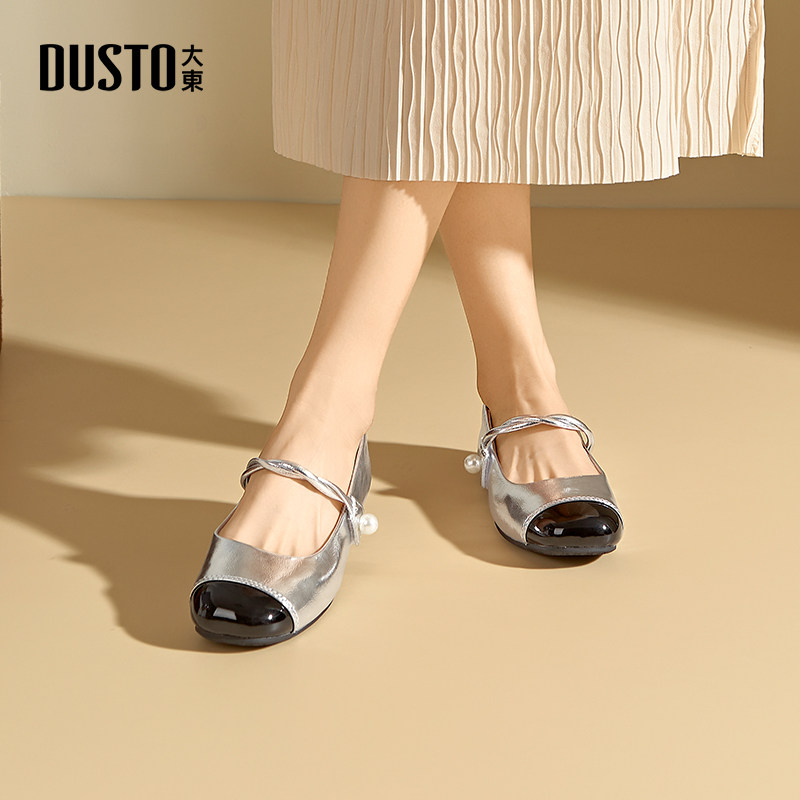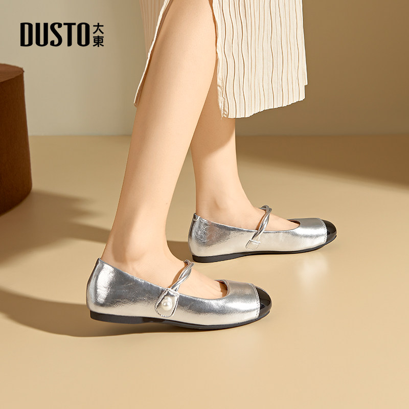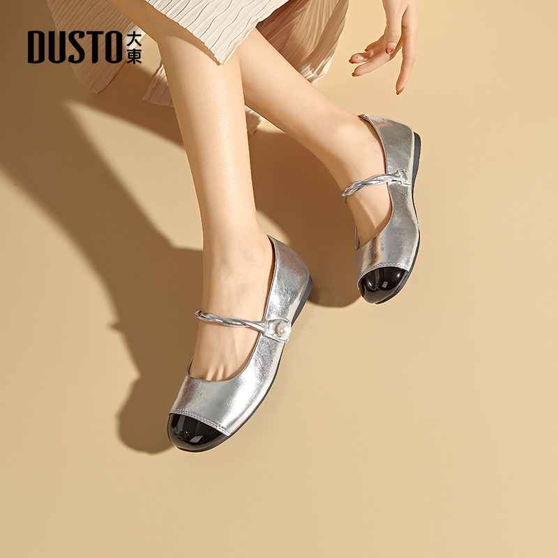 大东dd银色玛丽珍鞋女2026新款春季法式小香风女鞋单鞋平底小皮鞋