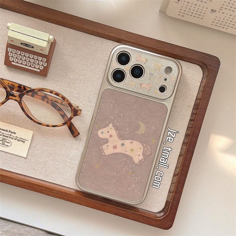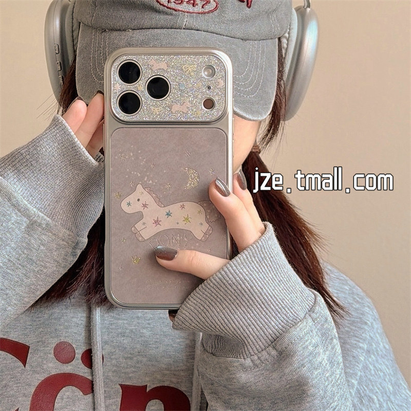 jze韩风ins少女心闪粉星星小马适用苹果17ProMax手机壳iphone15新款16pro带挂绳13电镀15pro全包14防摔手机套