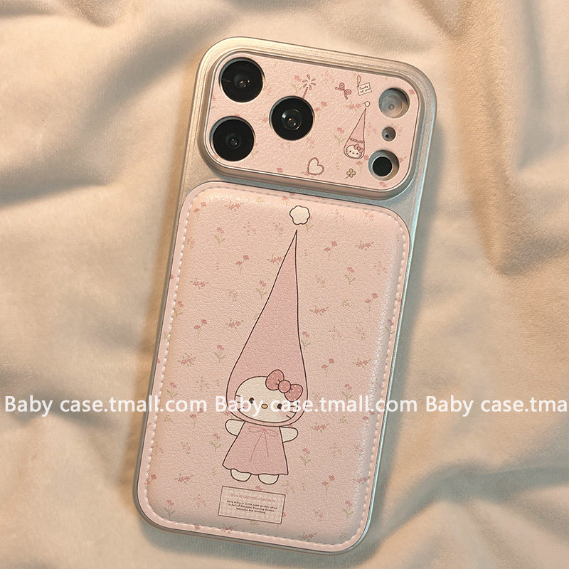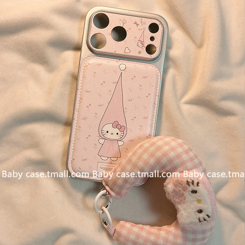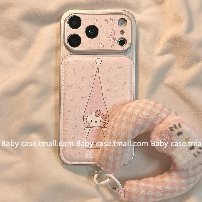 311线报网描述:甜美少女粉色碎花猫咪挂绳适用苹果手机壳