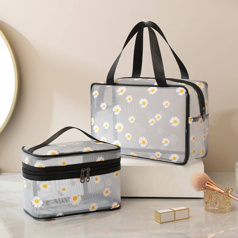 新款小雏菊网纱包透明化妆包大容量便携收纳包夏日旅行洗漱包防水