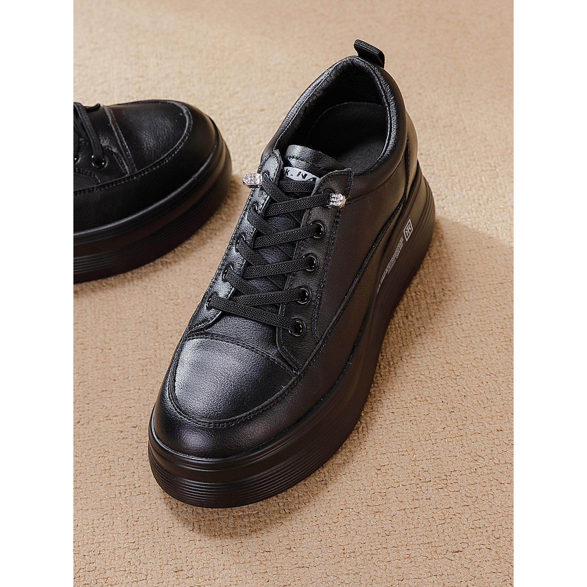 香港真皮内增高小皮鞋女鞋2026春加绒厚底显脚小个子小白鞋休闲鞋