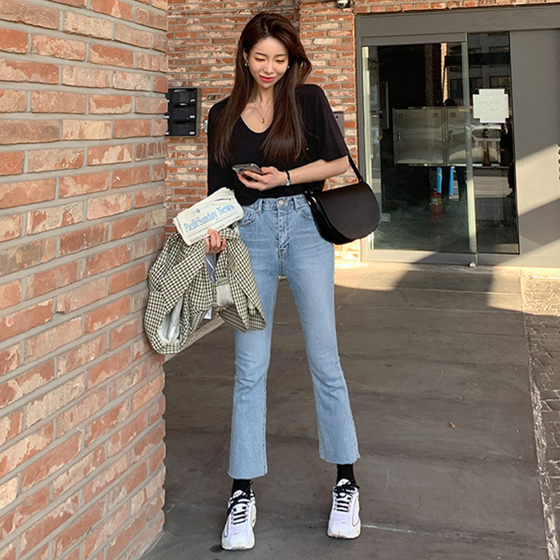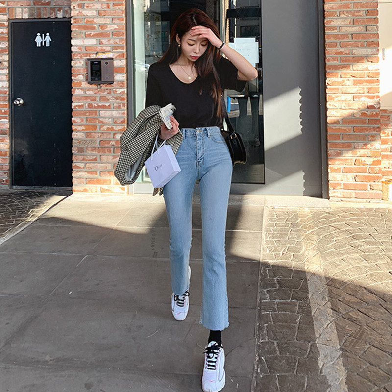 开档隐形拉链不退直筒九分牛仔裤女2026新款春款高腰弹力韩国直筒