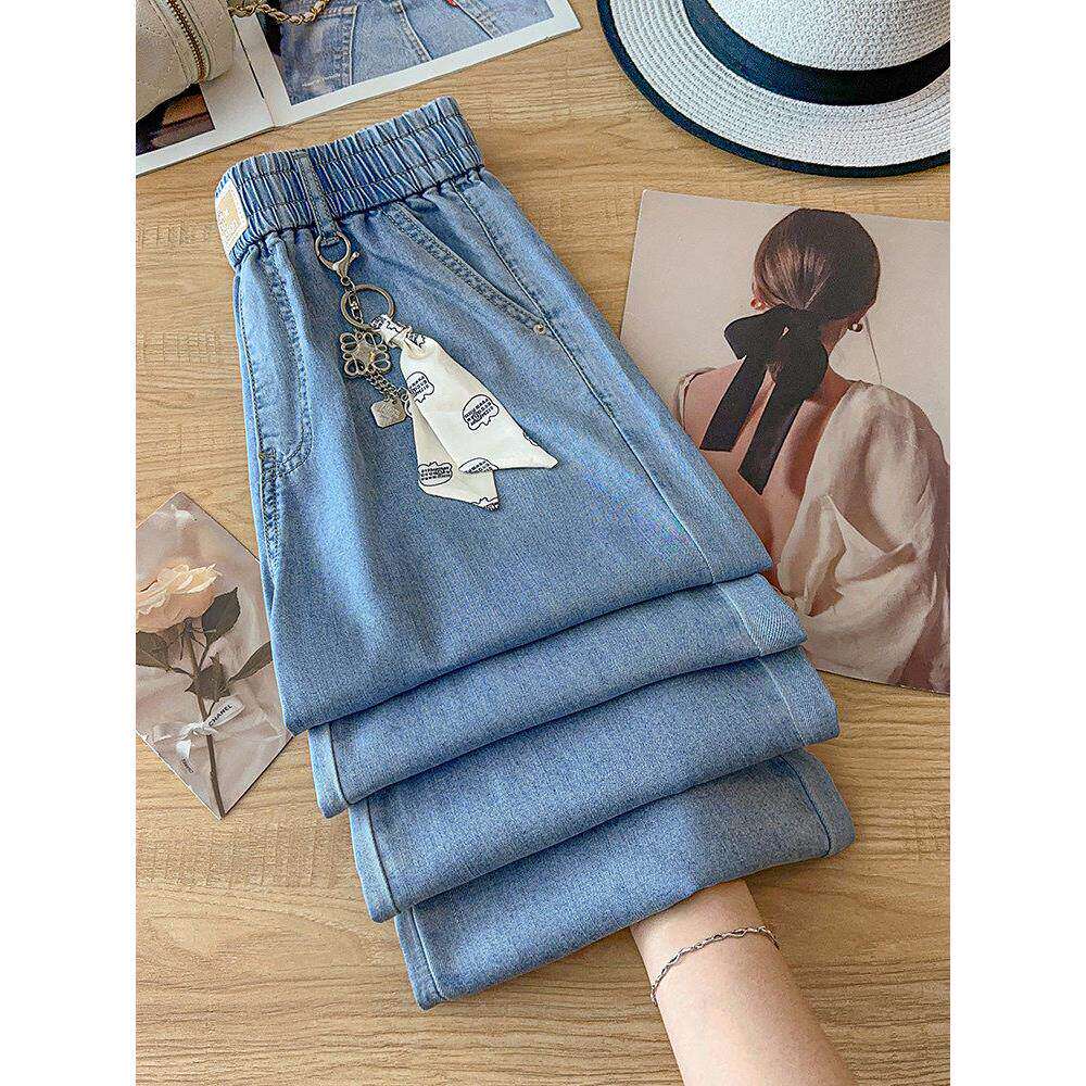 拉夏贝尔高端蓝色牛仔裤直筒裤女春款2026新款九分爆款阔腿休闲裤