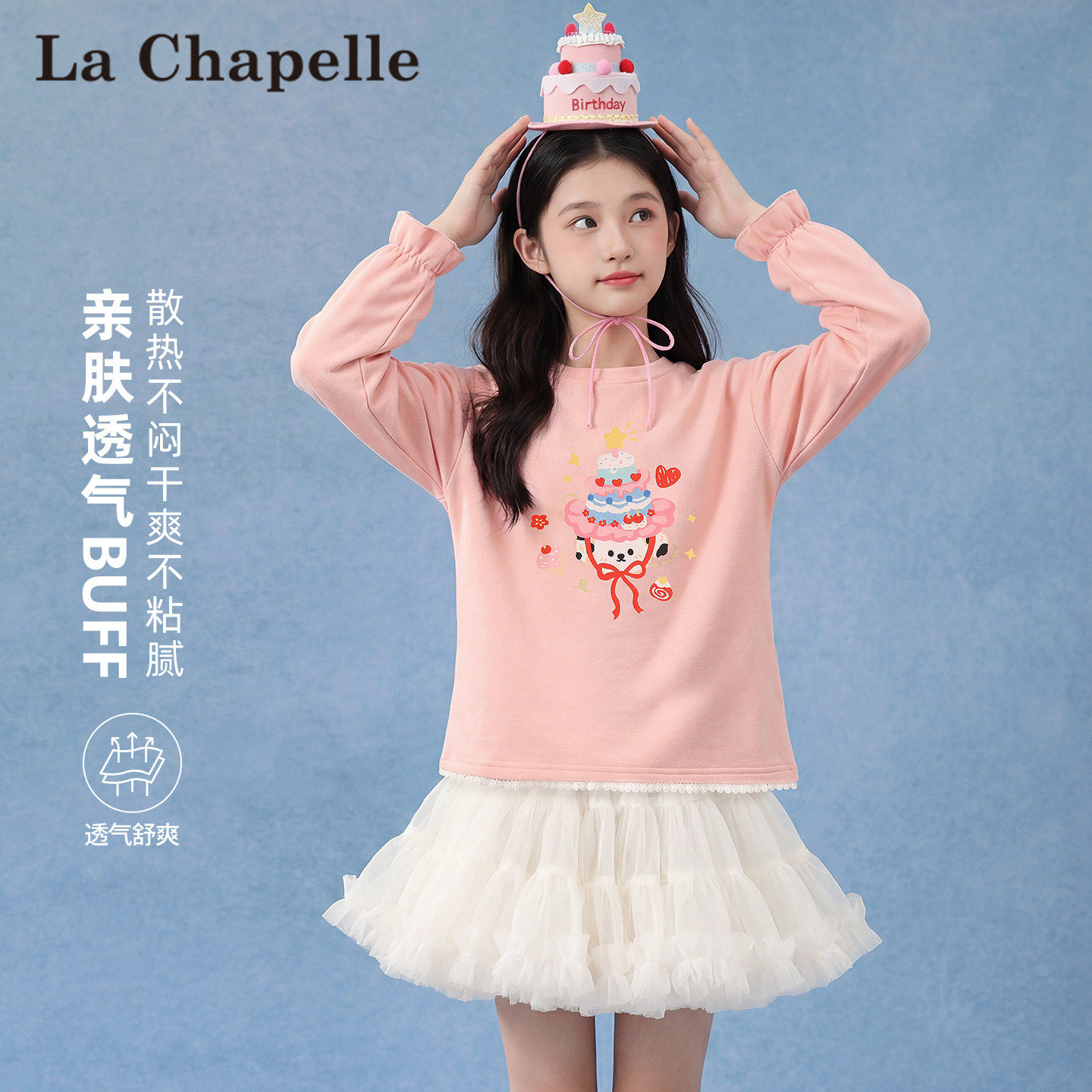 拉夏贝尔女童圆领卫衣新款春季儿童上衣春装超好看喇叭袖内搭童装